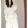 Top Blanco para Mujer Camisa de Manga Larga con Hombro Irregular Primavera Combinable Diseño de Moda Nicho Camisa de Hombro