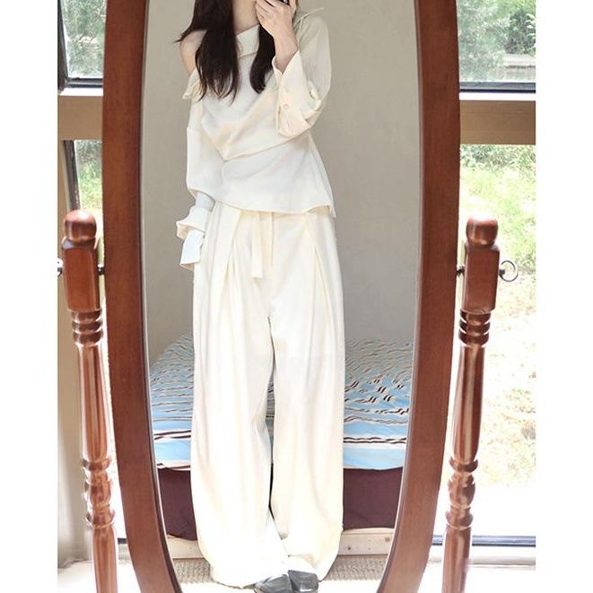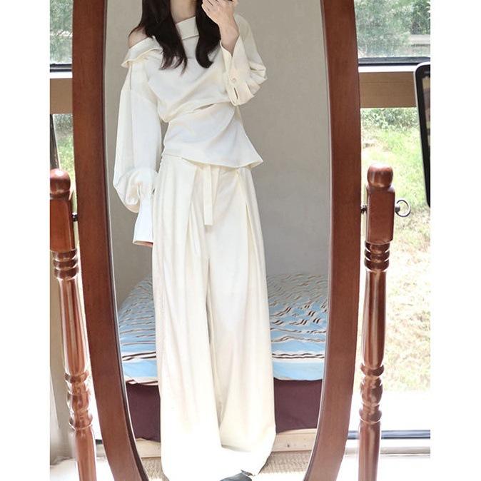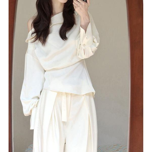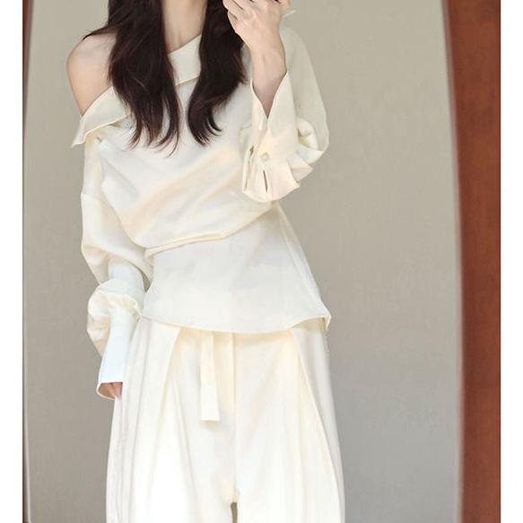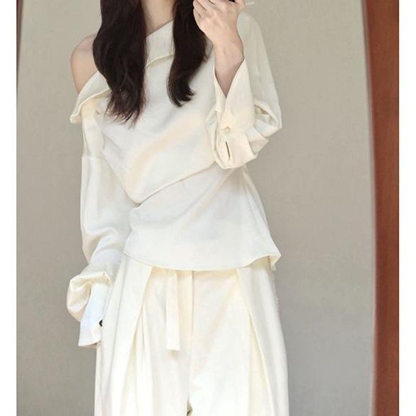 Compra Top Blanco para Mujer Camisa de Manga Larga con Hombro Irregular Primavera Combinable Diseño de Moda Nicho Camisa de Hombro al por mayor en Joom.pro