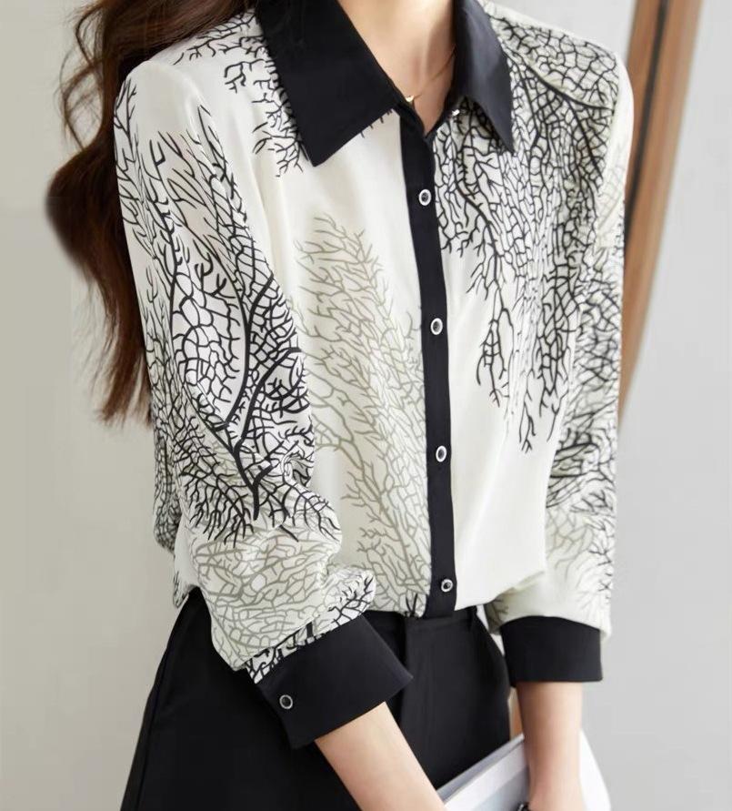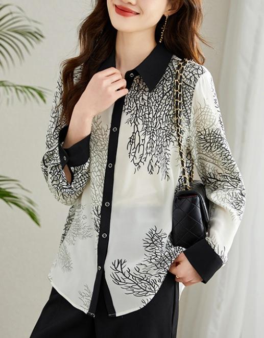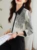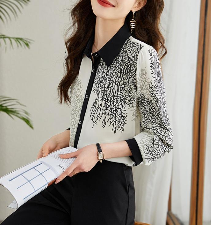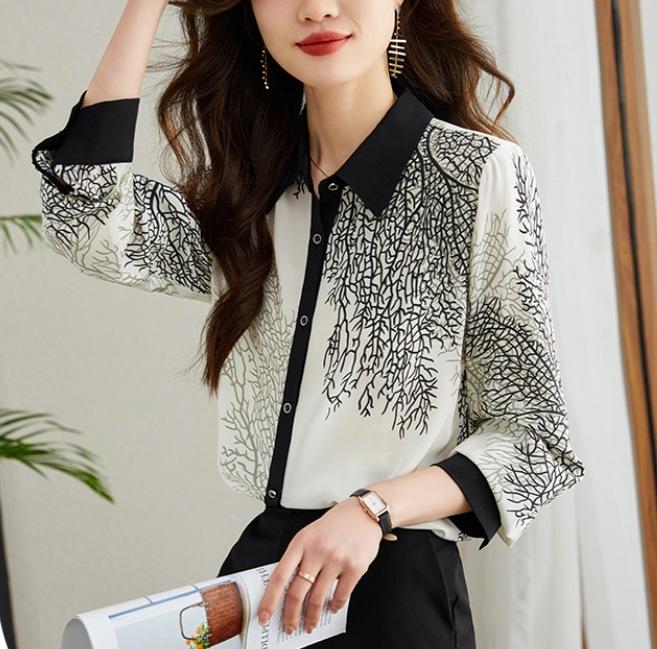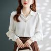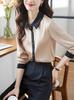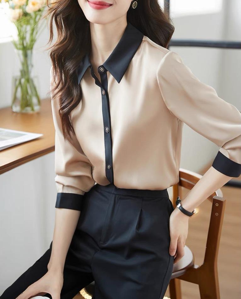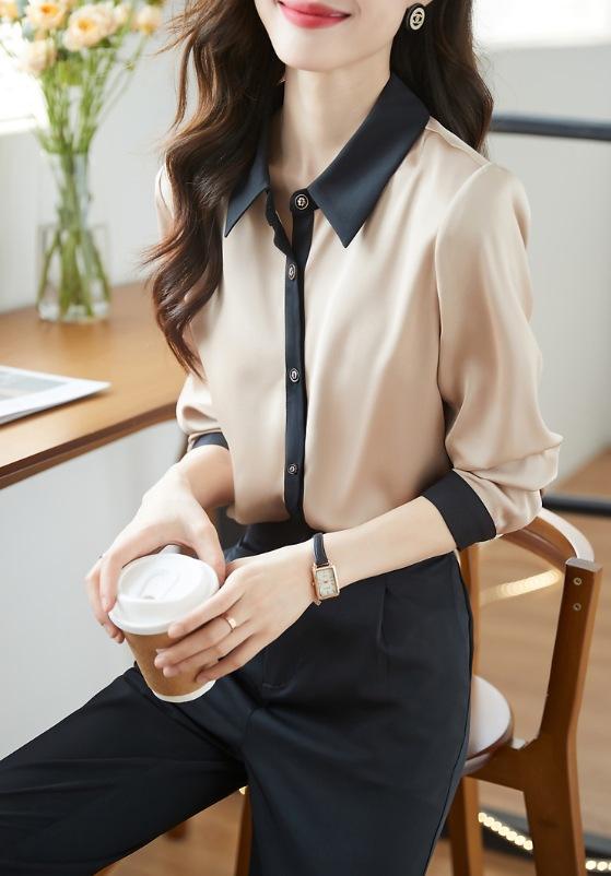 Camisa de Satén de Alta Calidad Drapeada de Manga Larga para Mujer Diseño de Nicho con Sentido de la Moda Primavera y Verano Nuevo Combinación de Colores para Ir al Trabajo Profesional Camisa OL