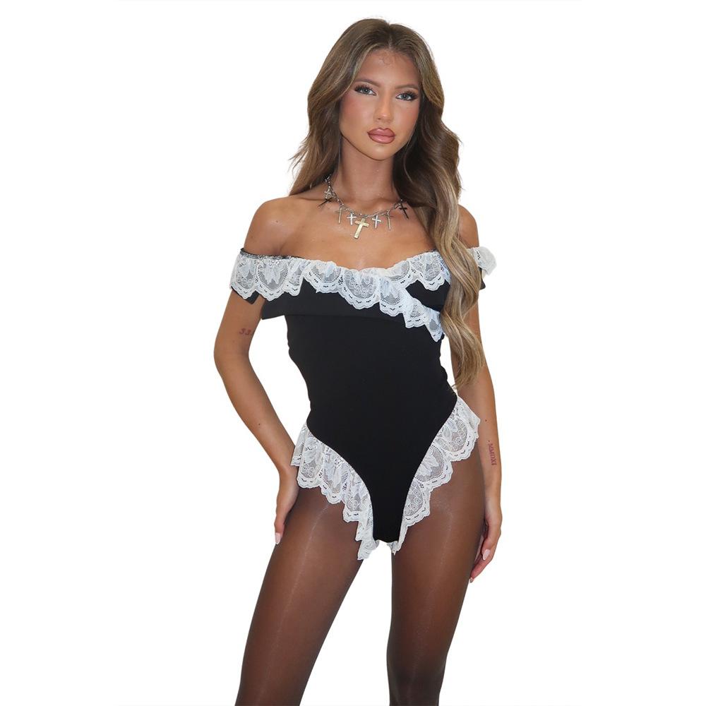 Europa y Estados Unidos comercio exterior transfronterizo 2025 primavera y verano nuevo estilo caliente sexy chica caliente costuras encaje mono sin mangas