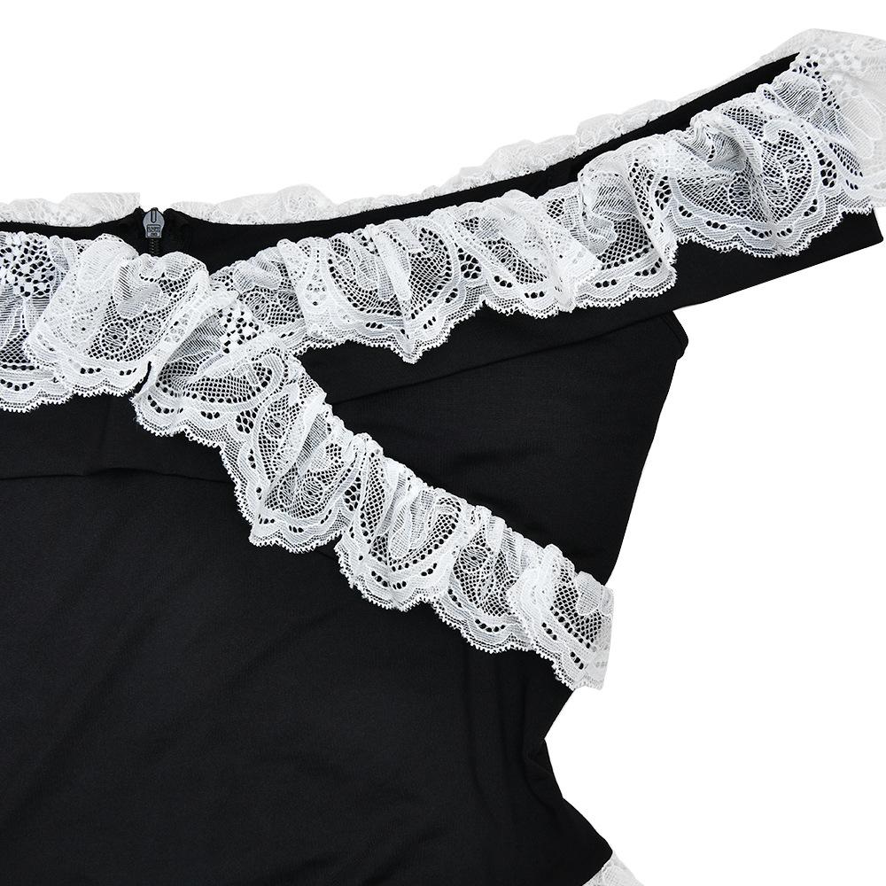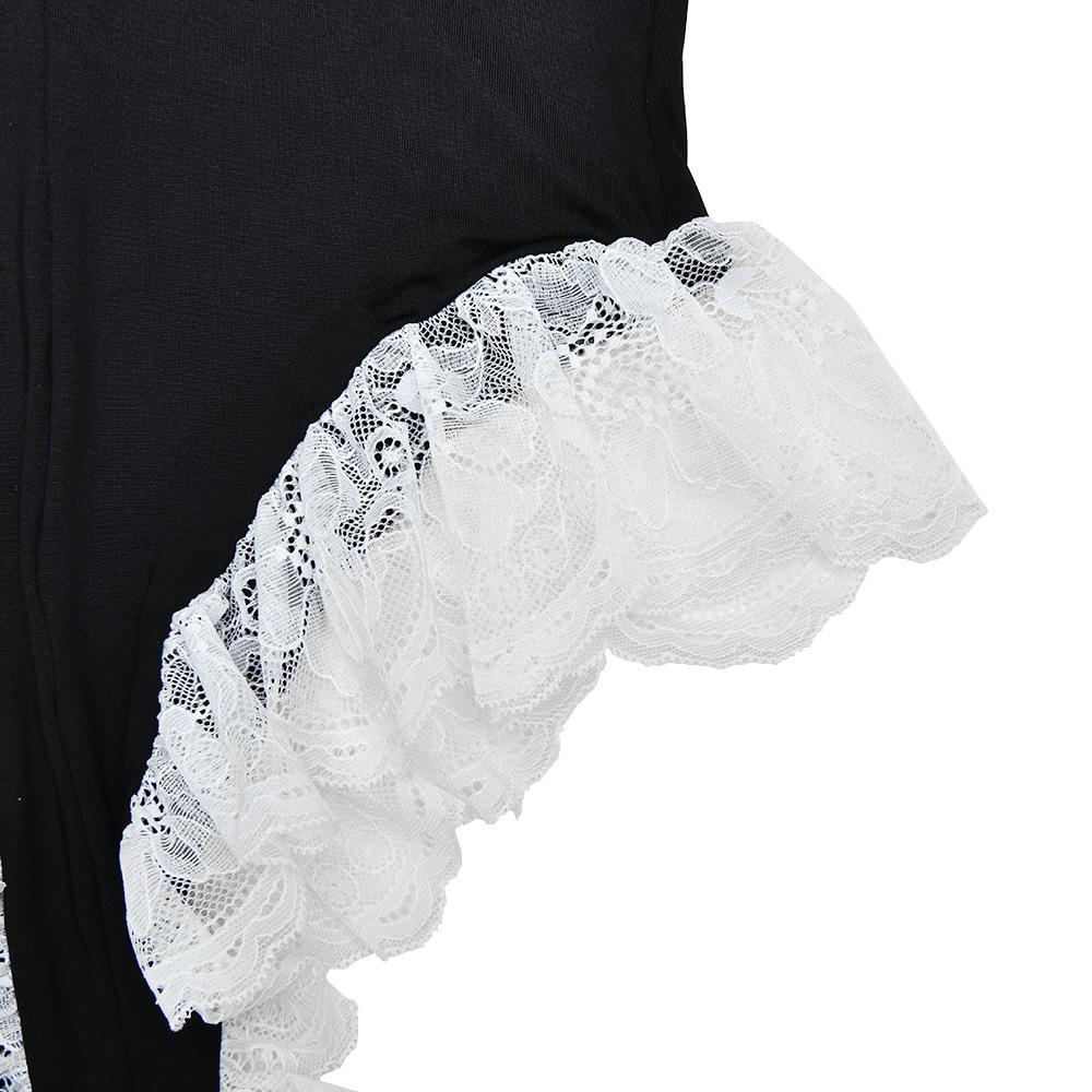 Black, Made of 180g milk silk fabric, patchwork lace backless design, Note: the back contains a zipper