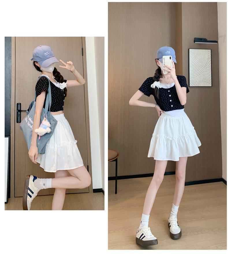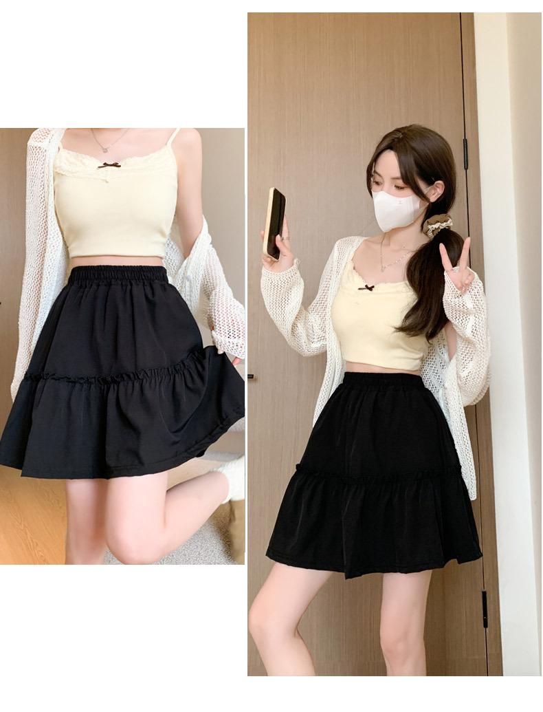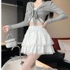 Falda corta de encaje blanco para mujer, primavera y verano 2025, nuevo estilo, estilo ballet, falda pastel, falda de media longitud abullonada de princesa con personaje A