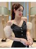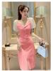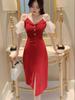 Compra Vestido de Verano de Alta Gama con Hombros Descubiertos, Femenino, Gentil, Ligero y Maduro Francés Cuello en V Tirantes Falda con Abertura al por mayor en Joom.pro