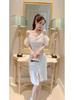 Vestido de Verano de Alta Gama con Hombros Descubiertos, Femenino, Gentil, Ligero y Maduro Francés Cuello en V Tirantes Falda con Abertura