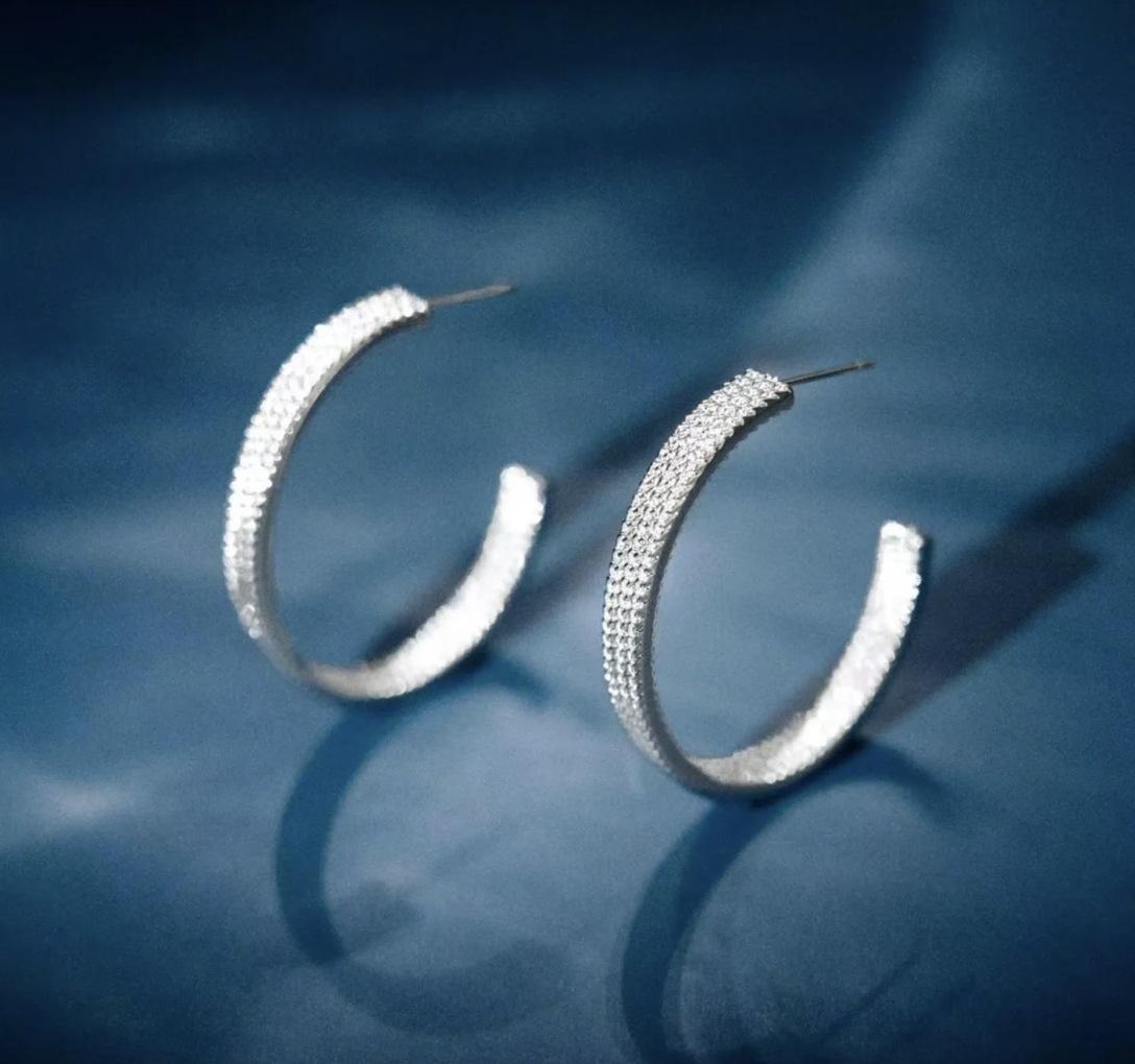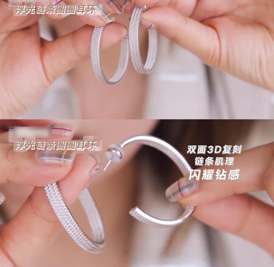 Nuevos Aretes de Aro de Cadena de Nicho de Alta Gama para Mujer Aretes de Plata Brillantes Tipo C Simples Elegantes Combinables