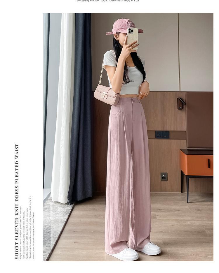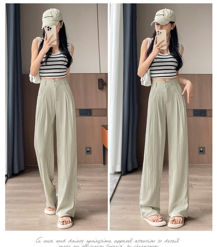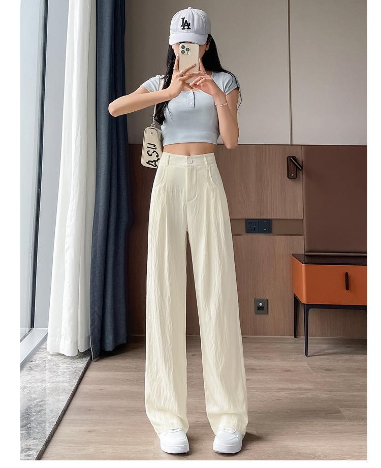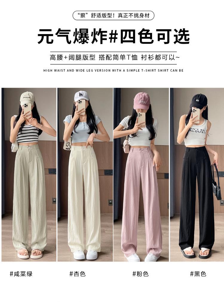 Compra Pantalones de Pierna Ancha de Algodón Lino Seda de Hielo para Mujer Primavera y Verano Delgados Cintura Alta Dosificación Protección Solar Pantalones Frescos Casuales Traje Estrecho Pantalones Rectos al por mayor en Joom.pro