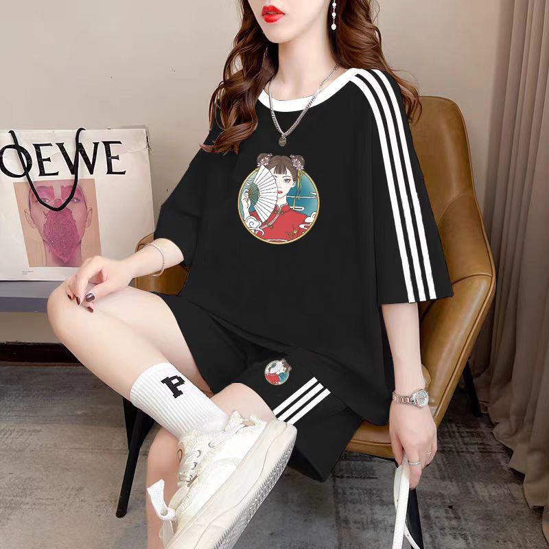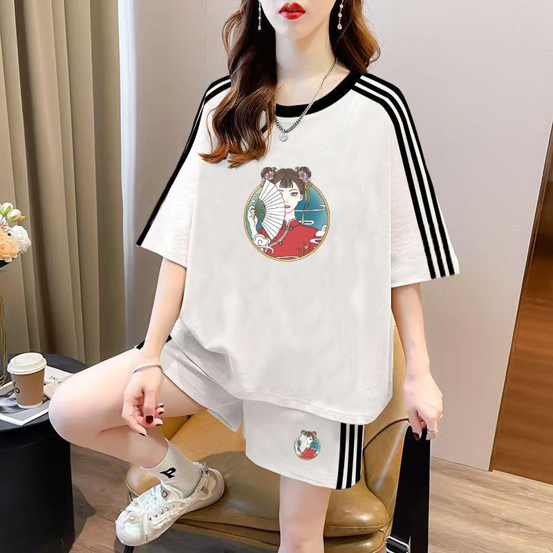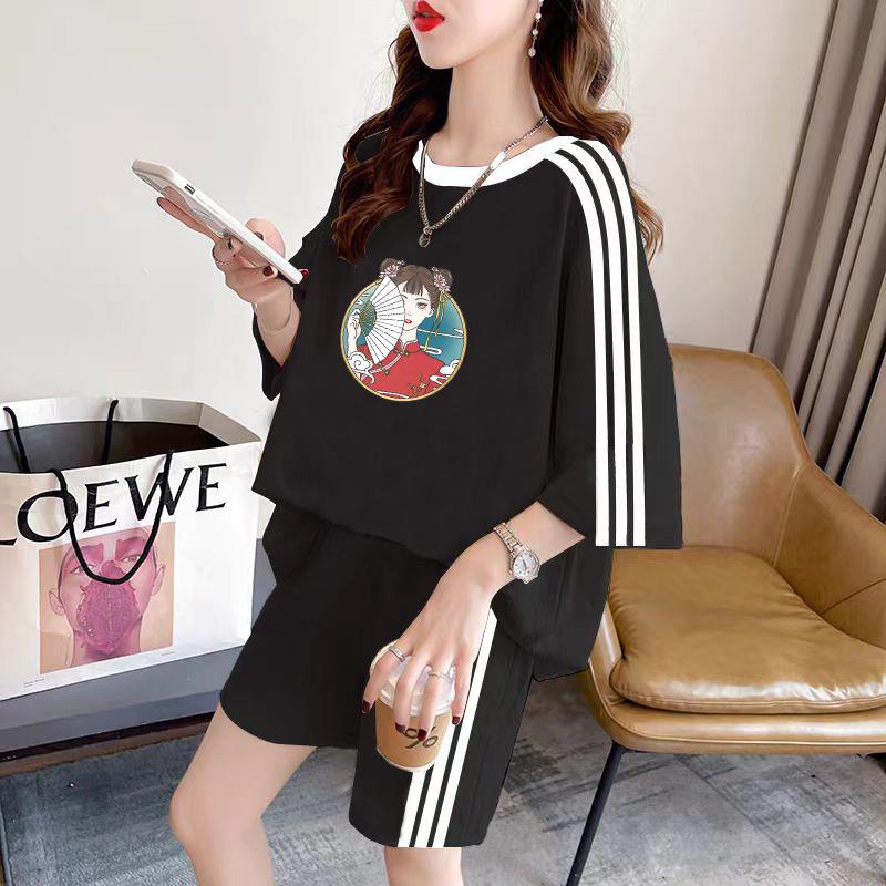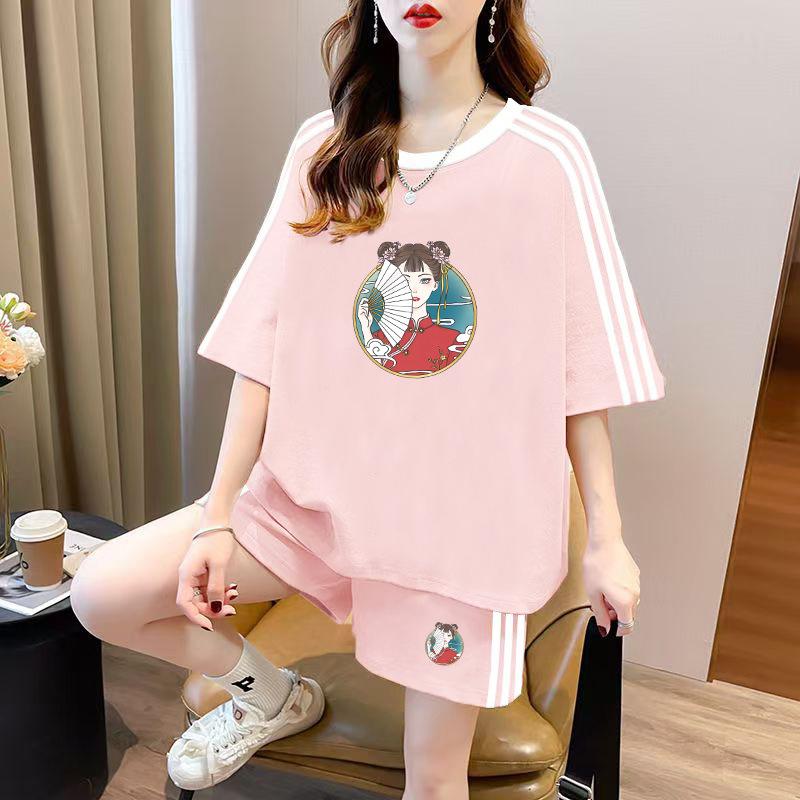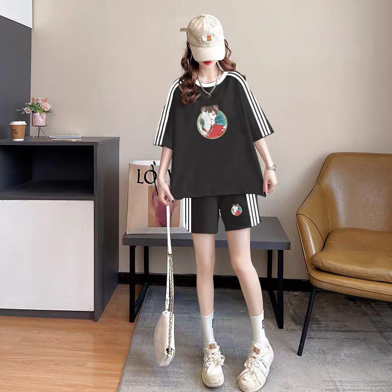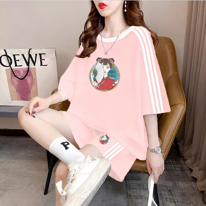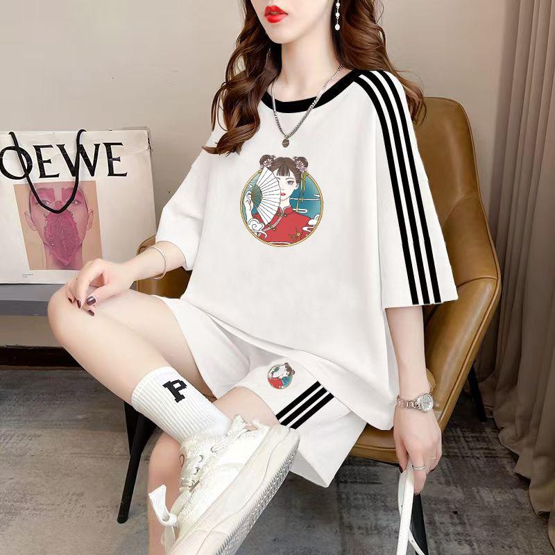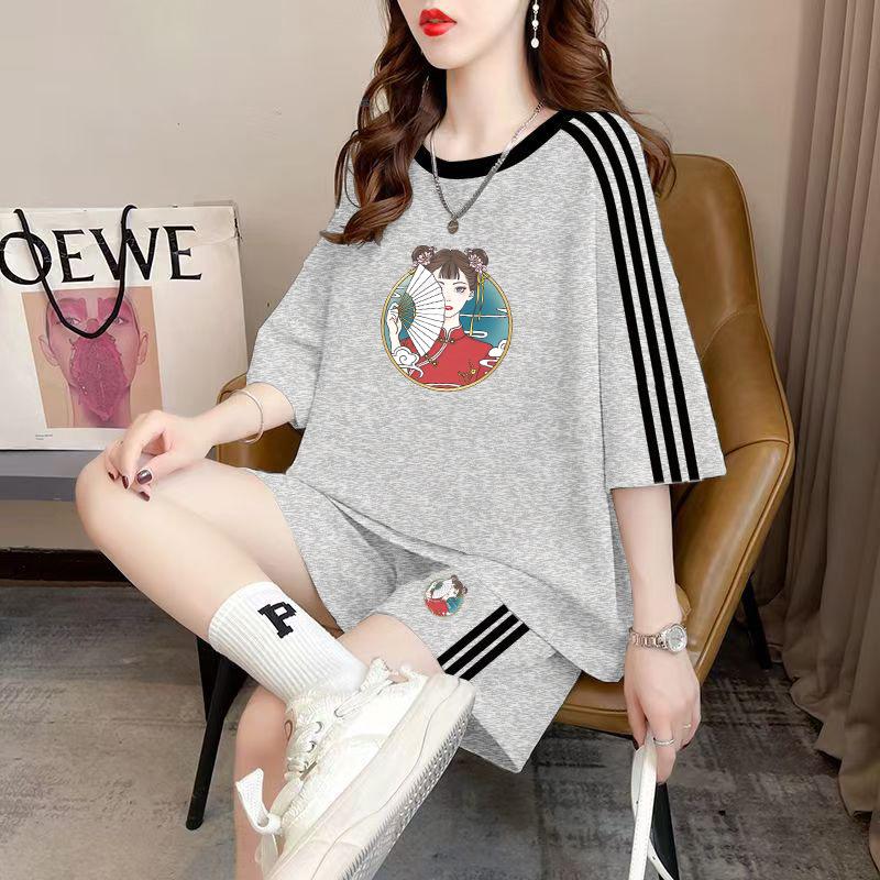 Conjunto de dos piezas de pantalones cortos holgados de manga corta con cuello redondo coreano, traje deportivo informal de talla grande, novedad de primavera y verano