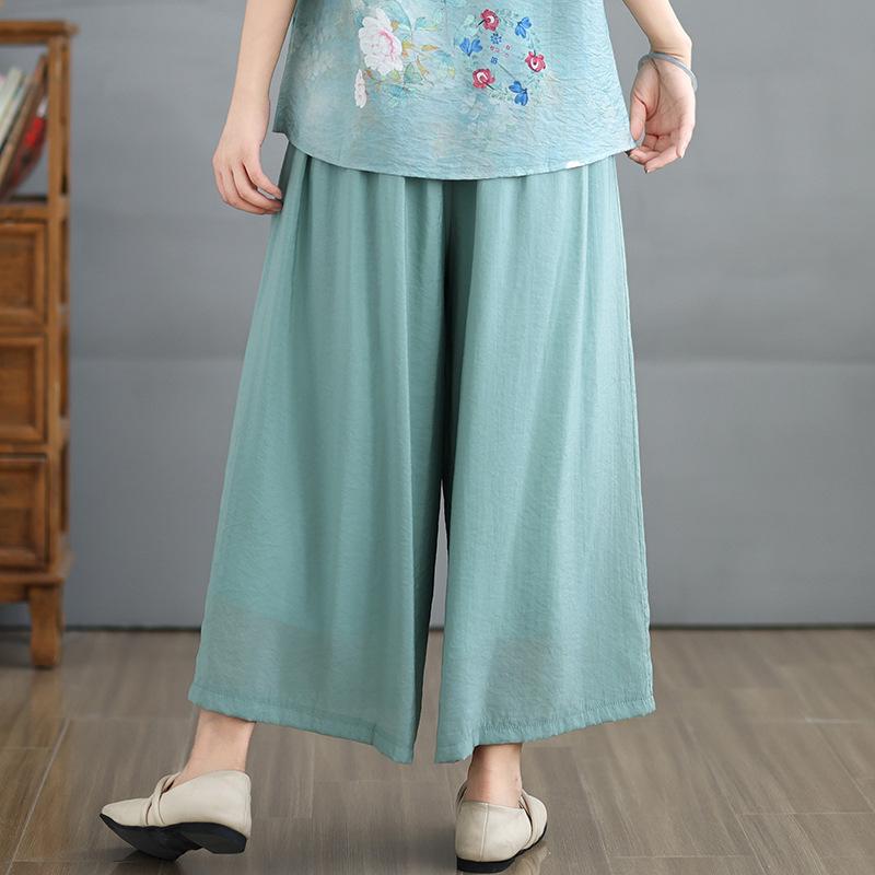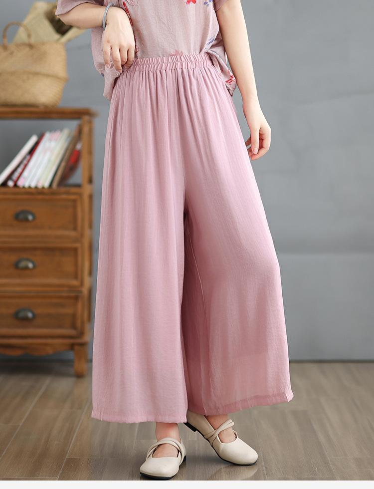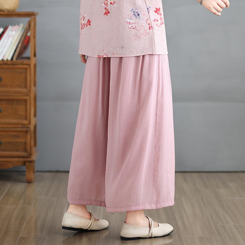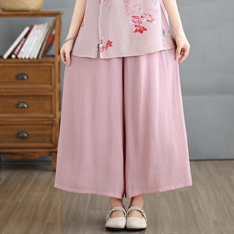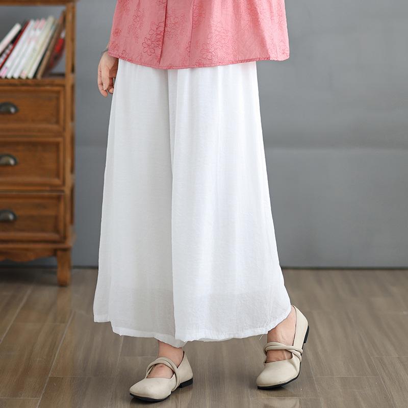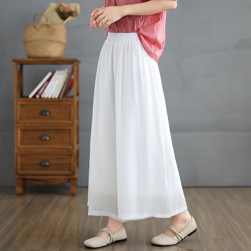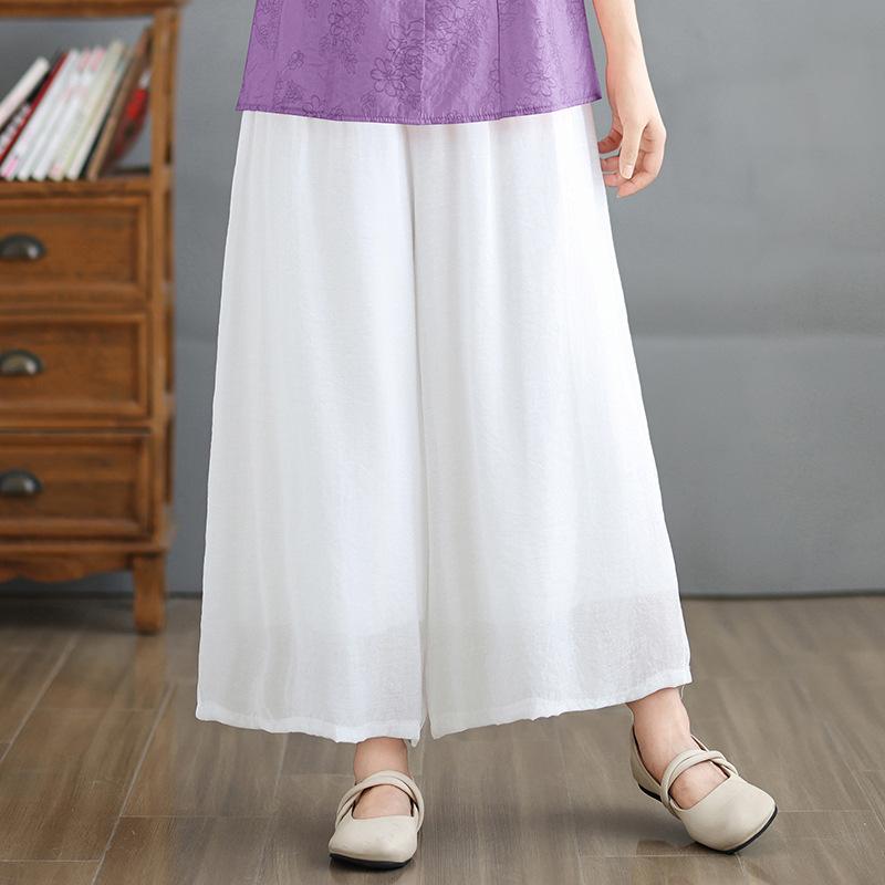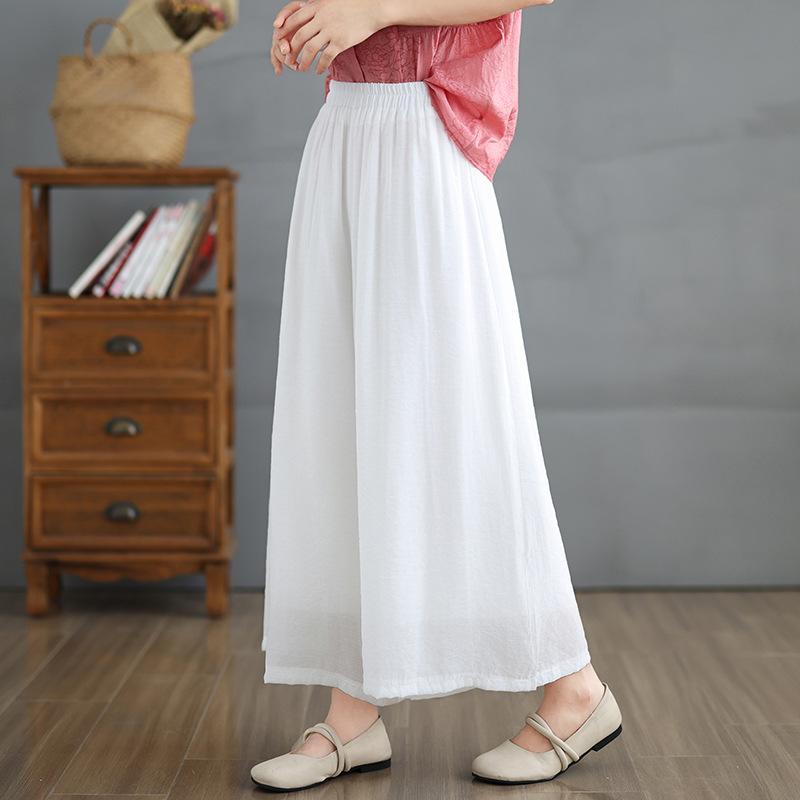 Pantalones anchos de lino y algodón para mujer, pantalón largo, recto, informal, de cintura alta, 2025