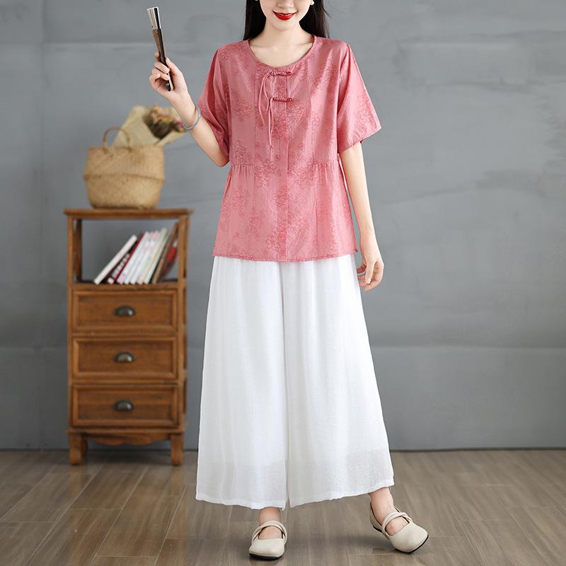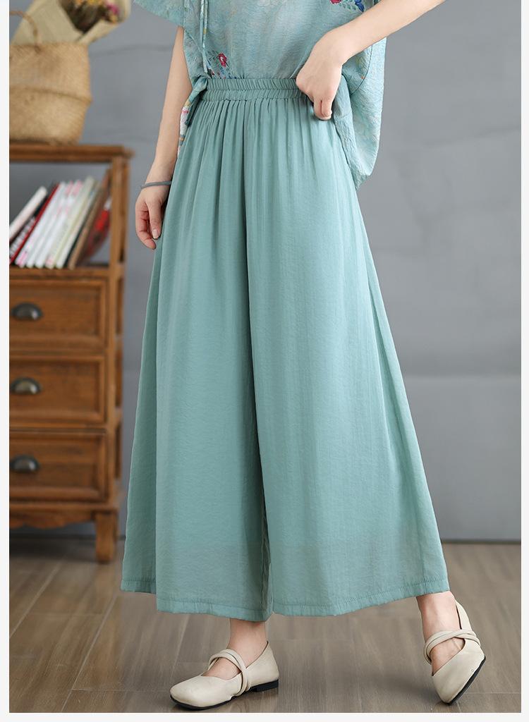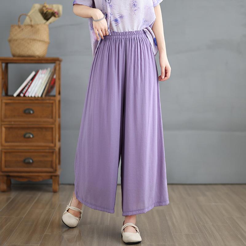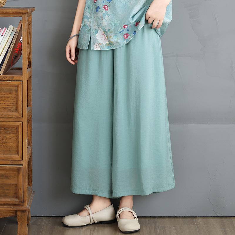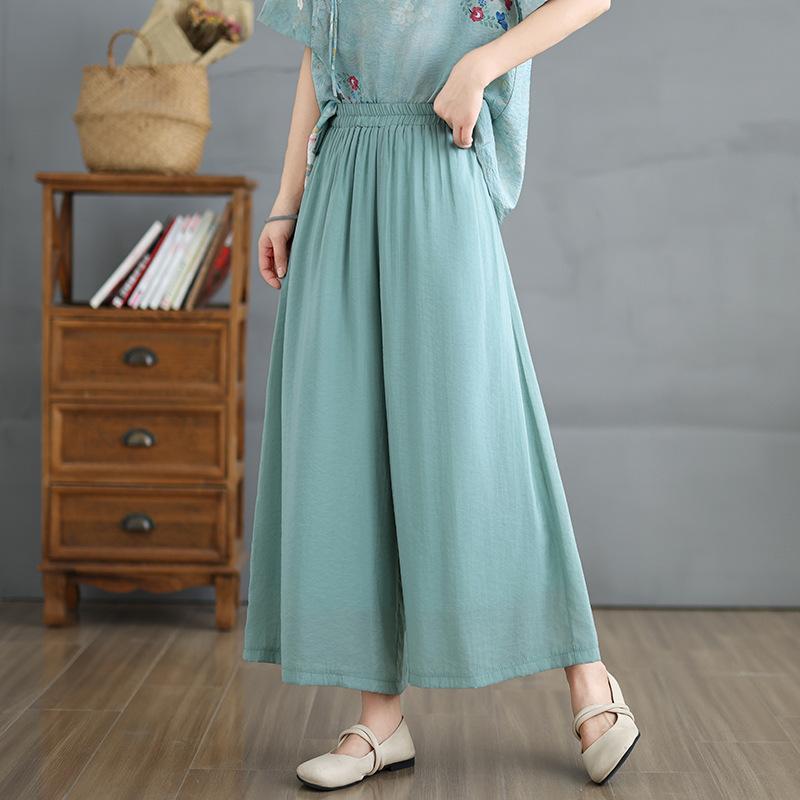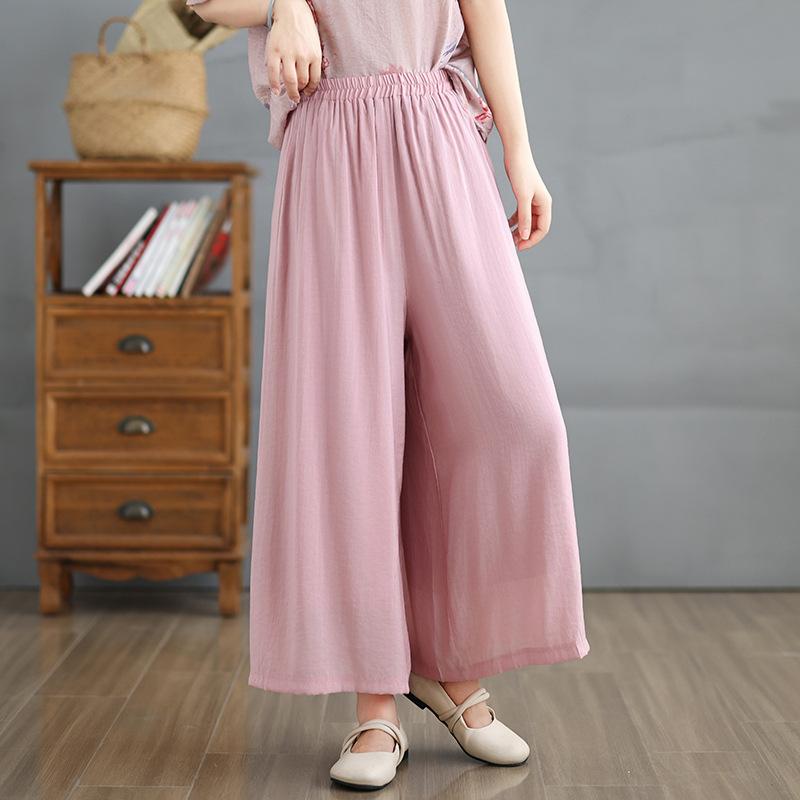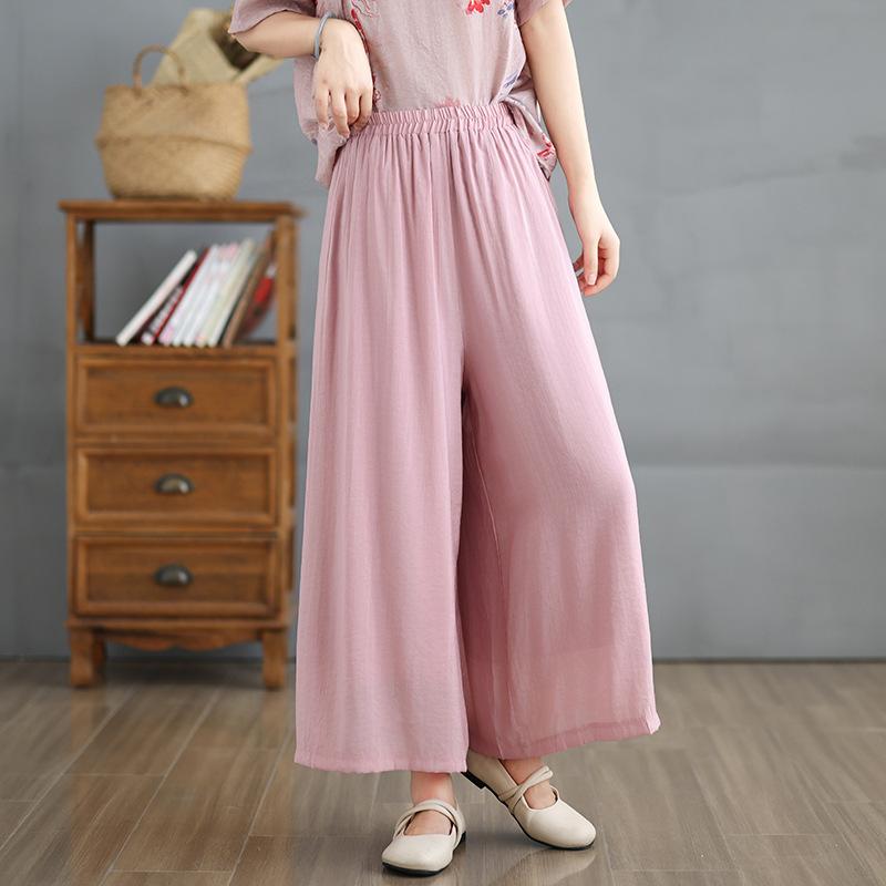 Pantalones anchos de lino y algodón para mujer, pantalón largo, recto, informal, de cintura alta, 2025