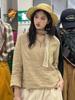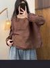 Camisa de lino de alta gama para mujer, cuello redondo, primavera y verano 2025, nueva, suelta, combinable, color sólido, estilo simple, manga larga, top artístico