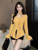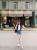 Camiseta de verano estilo americano con rayas en los hombros, corte entallado, cuello redondo en contraste, Pure Desire Hot Girls Sexy Niche Top Ins