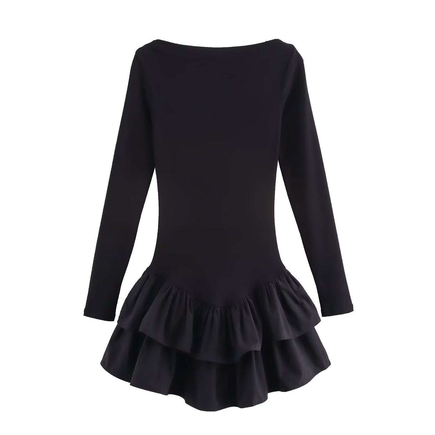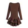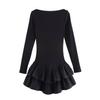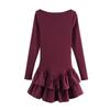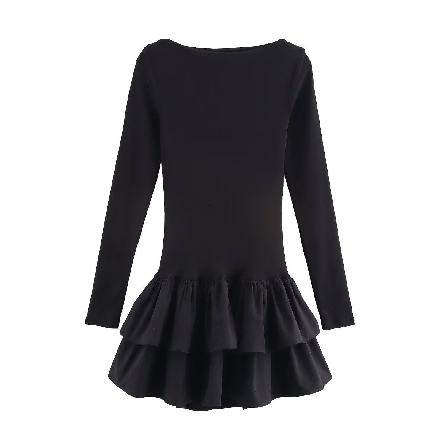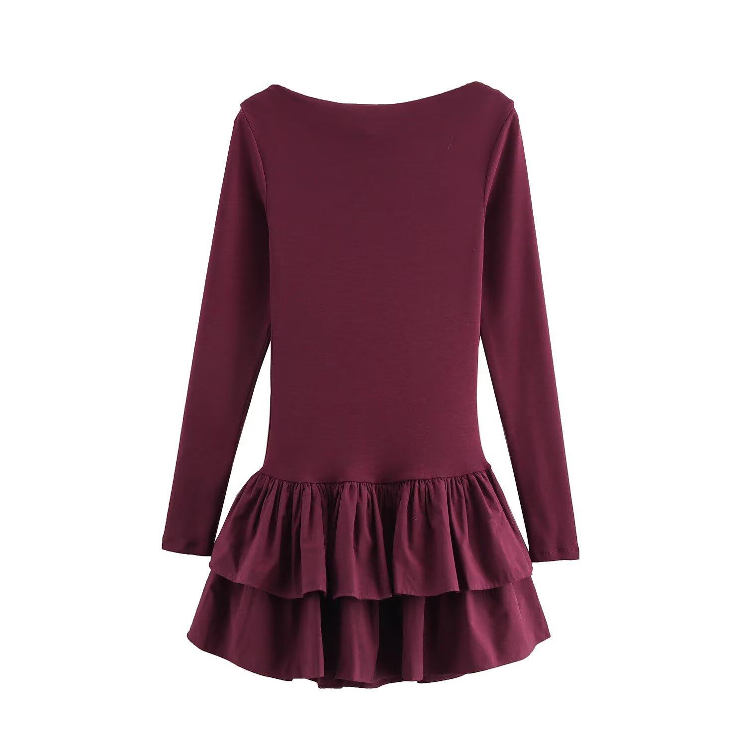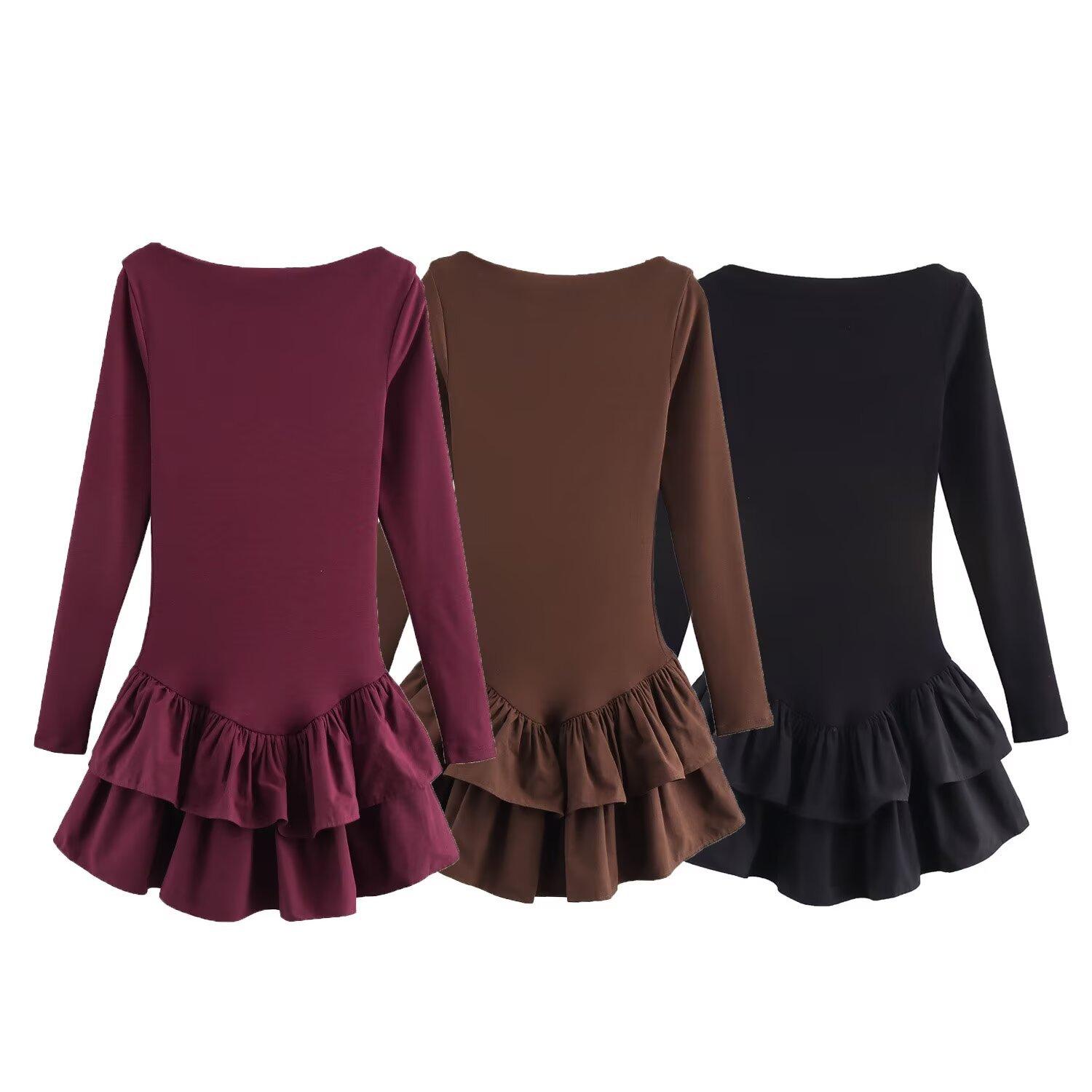 Ropa de Mujer Transfronteriza Europea y Americana 2025 Primavera Nuevo Cuello Redondo Manga Larga Color Sólido Decorativo por Capas Vestido Corto 0085308