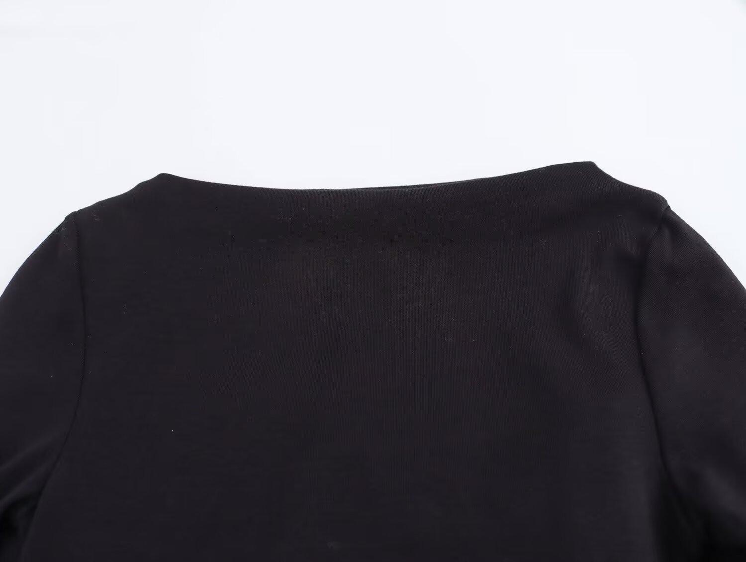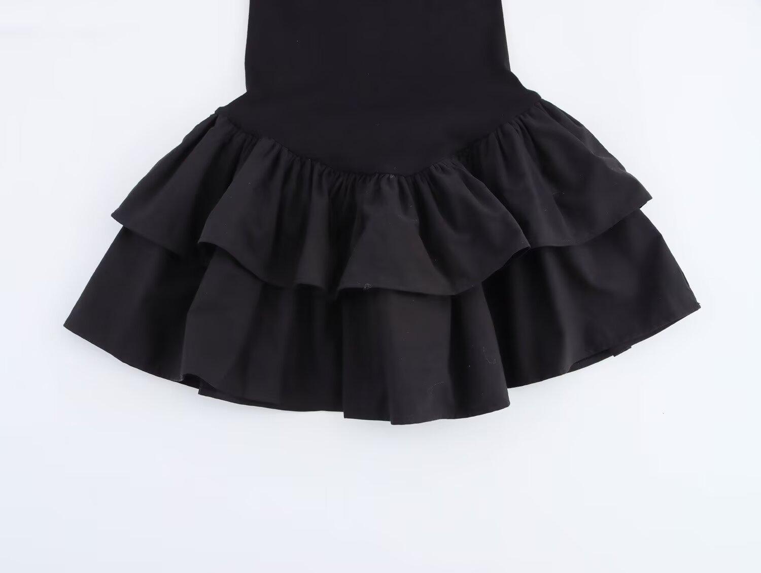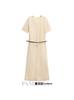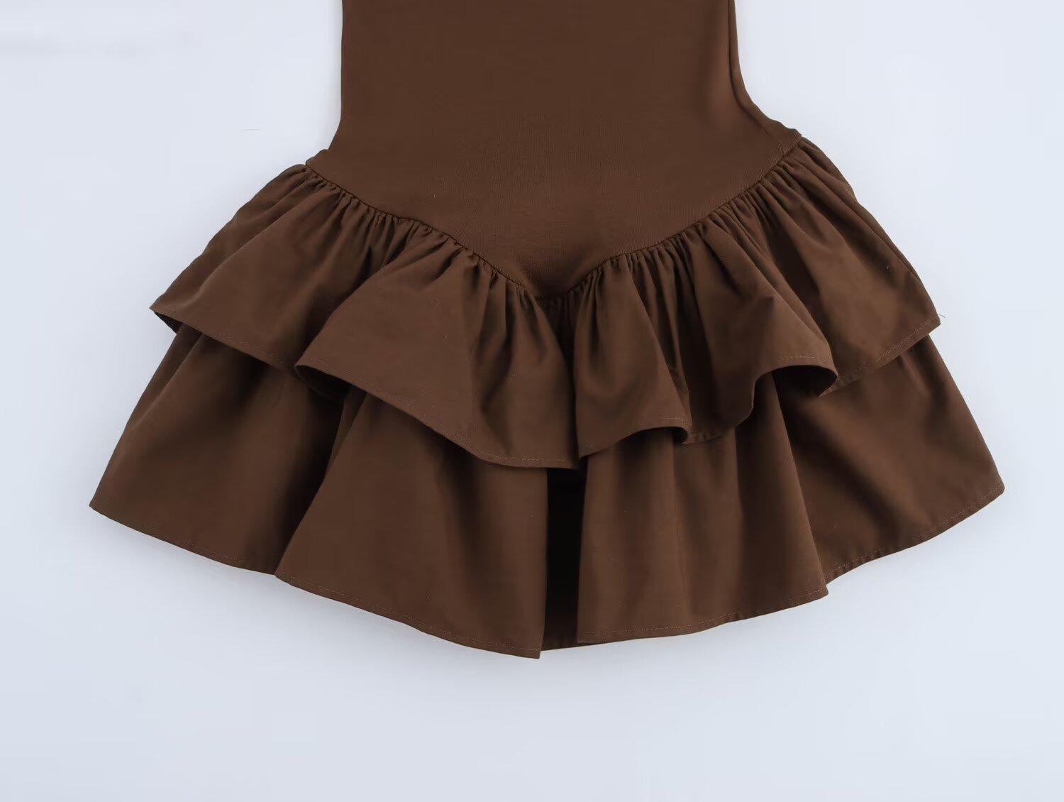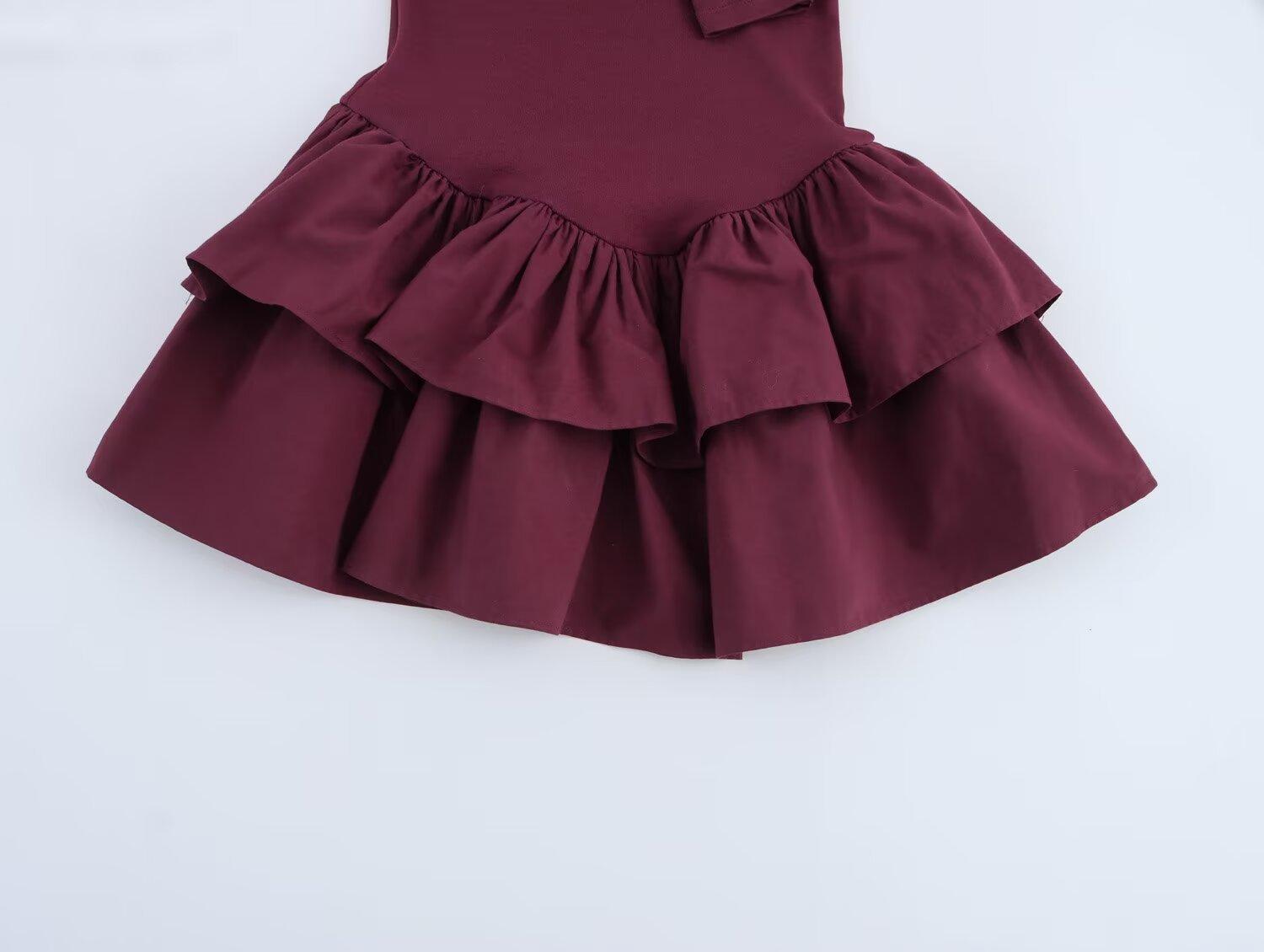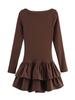 Ropa de Mujer Transfronteriza Europea y Americana 2025 Primavera Nuevo Cuello Redondo Manga Larga Color Sólido Decorativo por Capas Vestido Corto 0085308