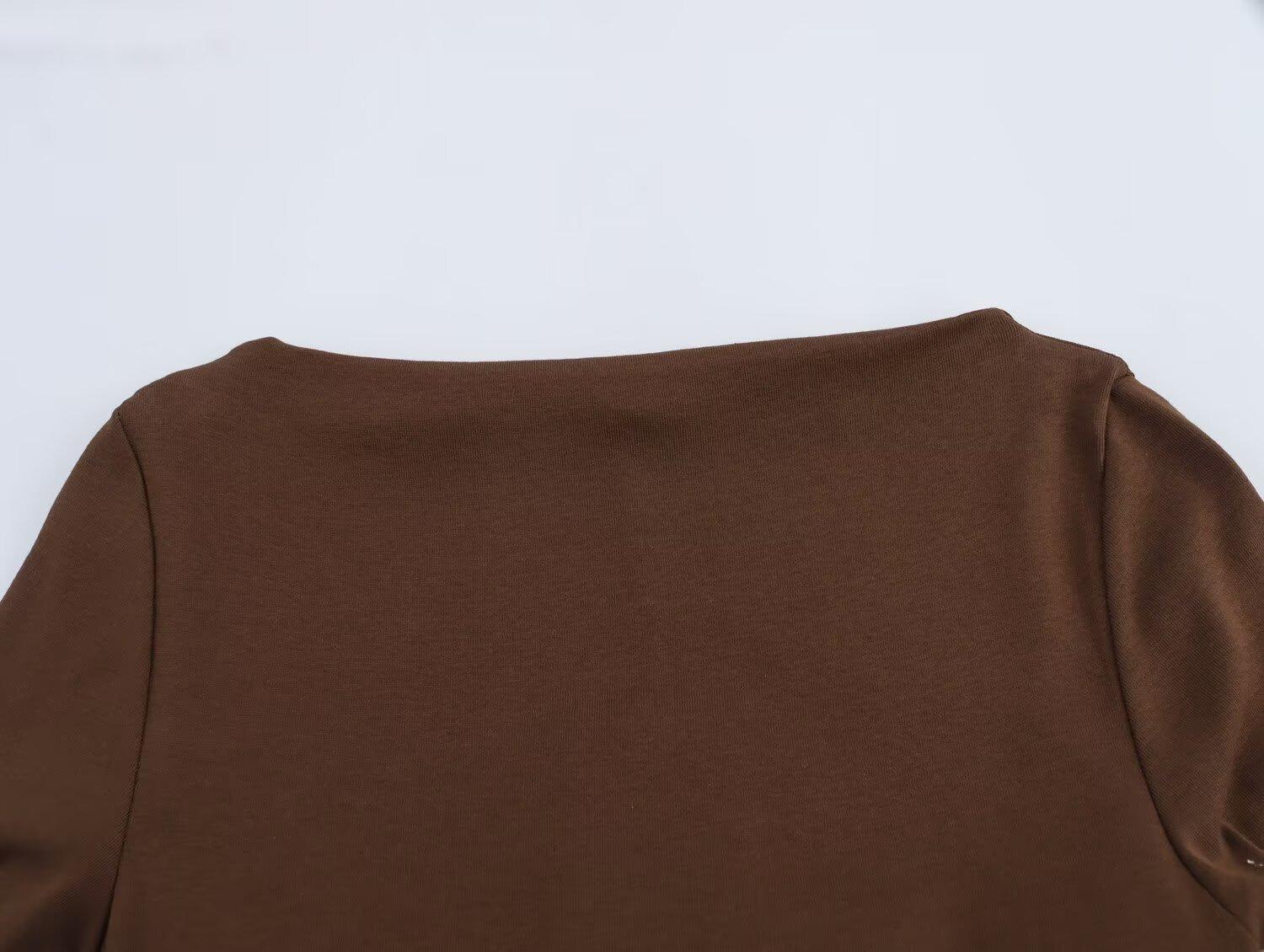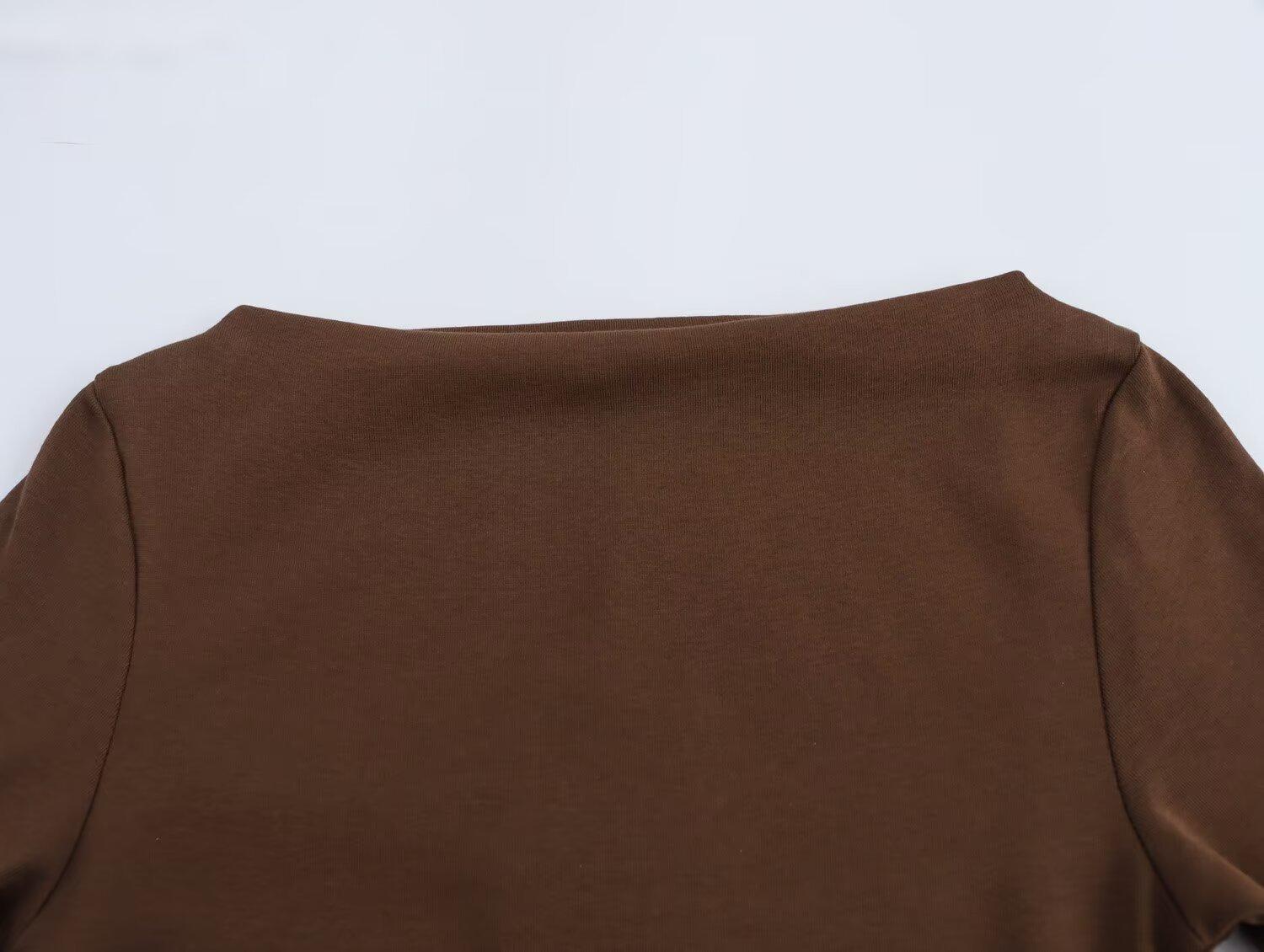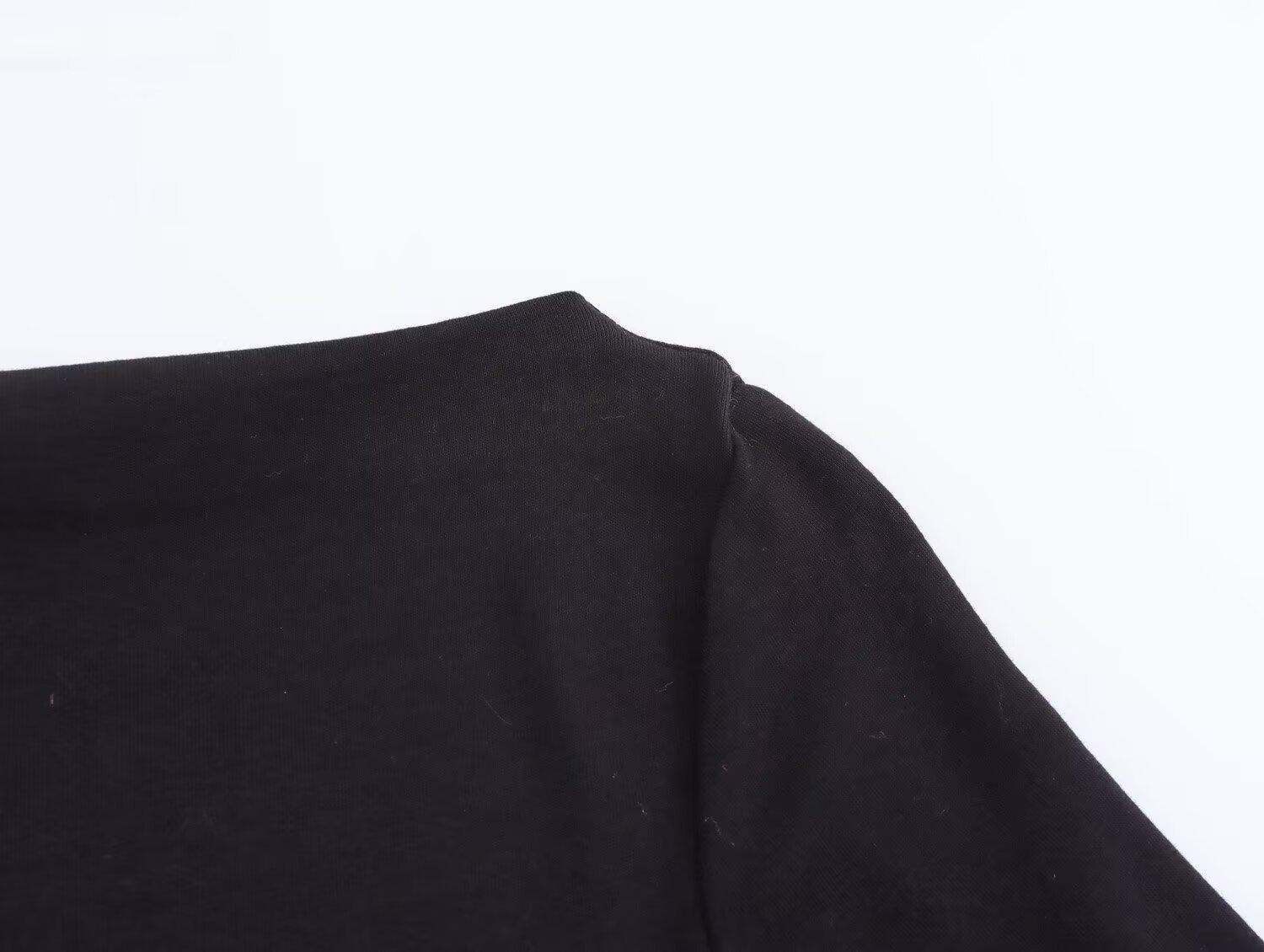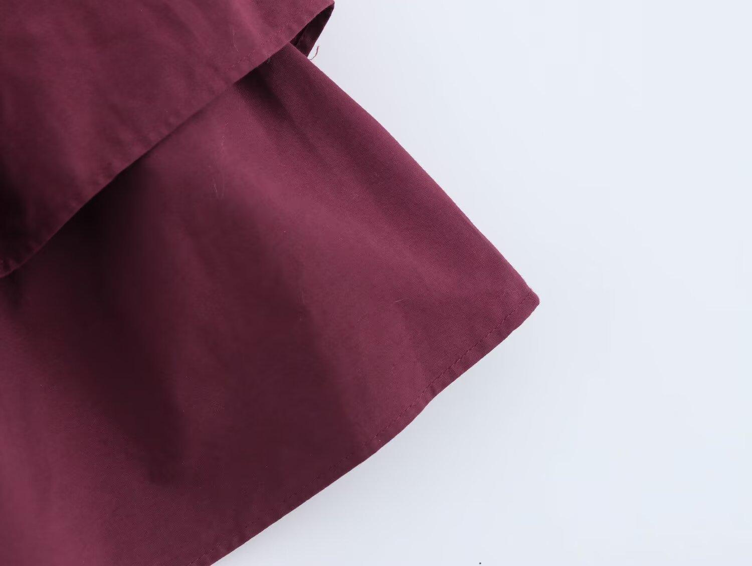Ropa de Mujer Transfronteriza Europea y Americana 2025 Primavera Nuevo Cuello Redondo Manga Larga Color Sólido Decorativo por Capas Vestido Corto 0085308