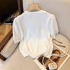 Toma real~ Suéter de manga corta con lazo de encaje para mujer estilo verano 2025 de alta gama con costuras de cuentas hombro recto