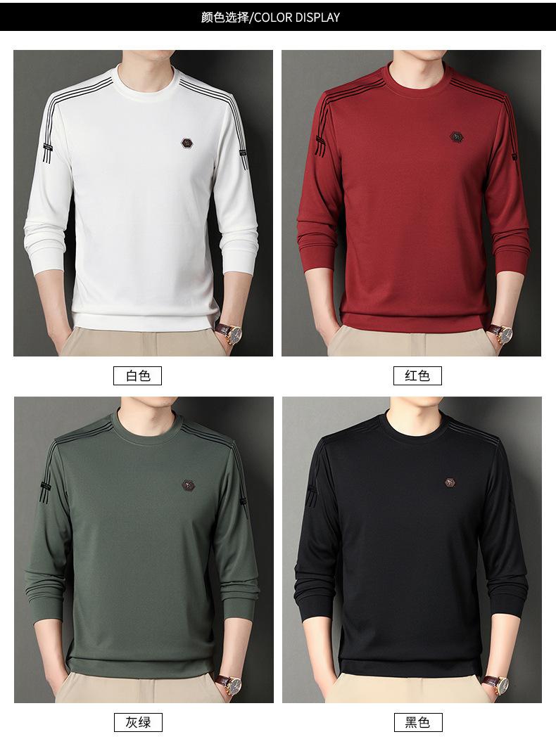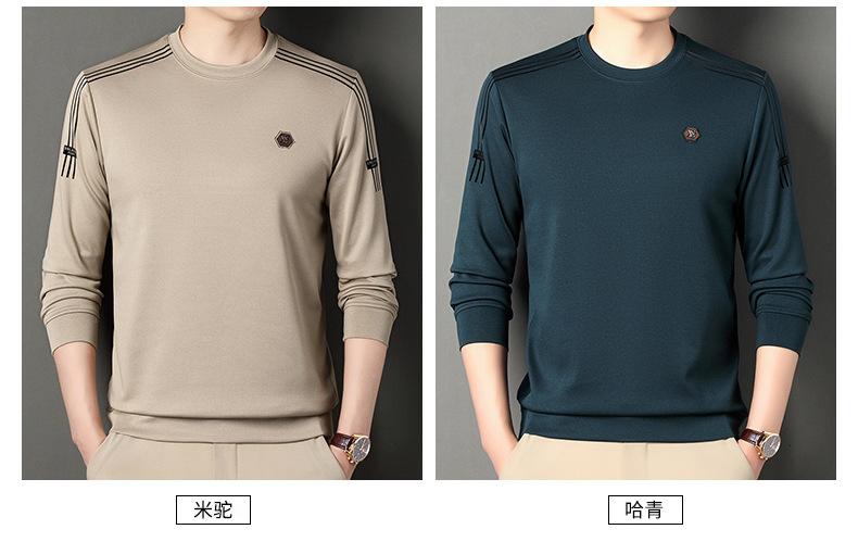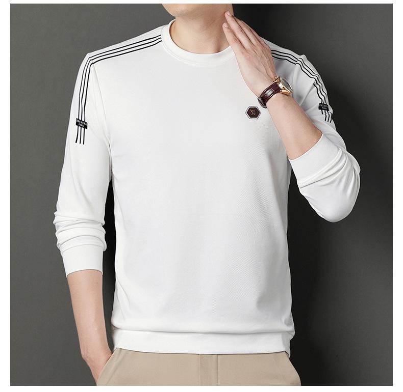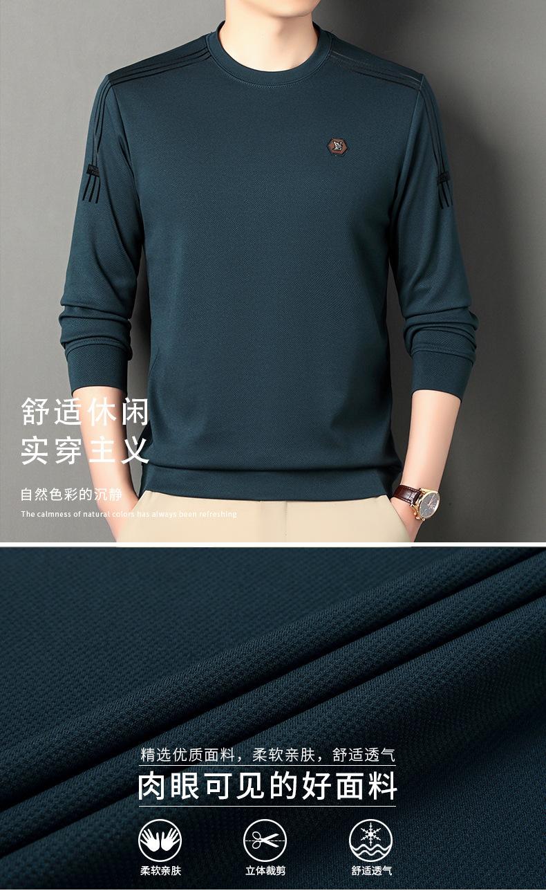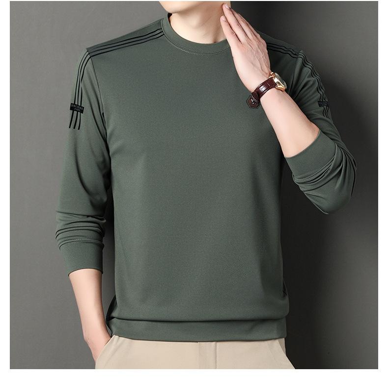 Suéter informal de cuello redondo para hombre, camiseta de manga larga con estampado de mediana edad, estilo informal, primavera 2025
