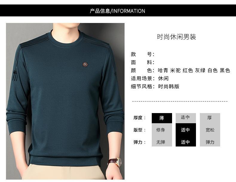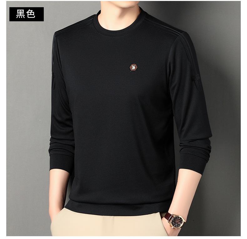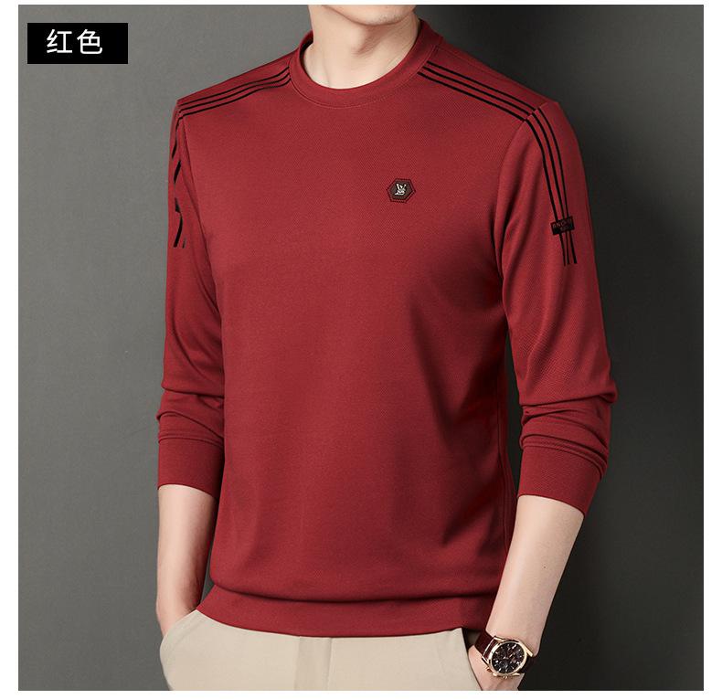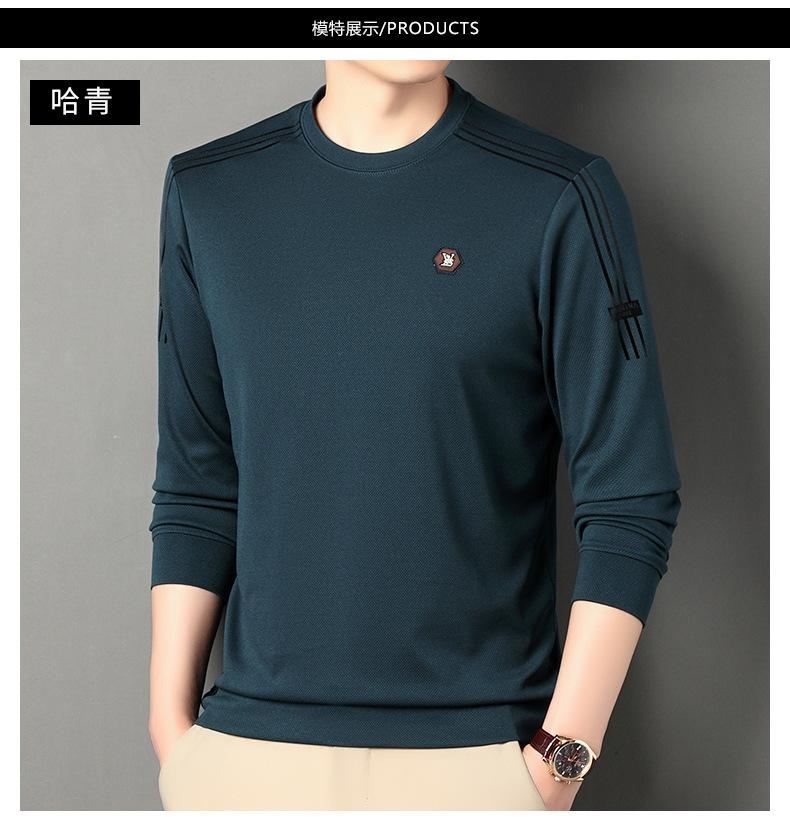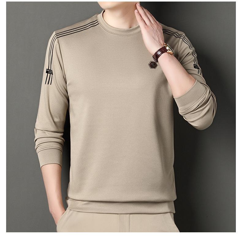 Suéter informal de cuello redondo para hombre, camiseta de manga larga con estampado de mediana edad, estilo informal, primavera 2025