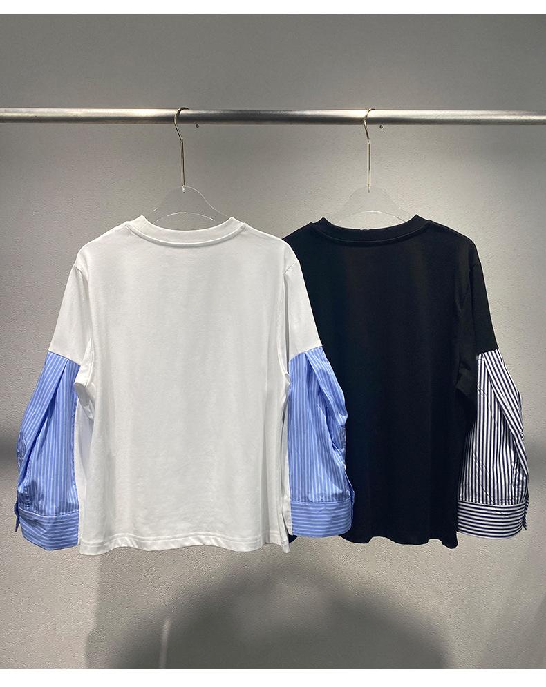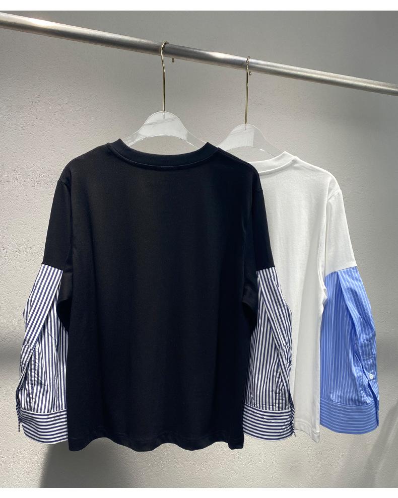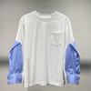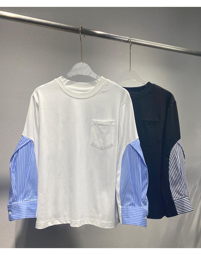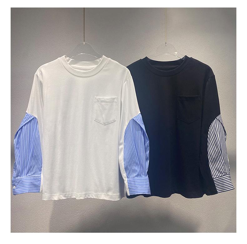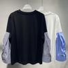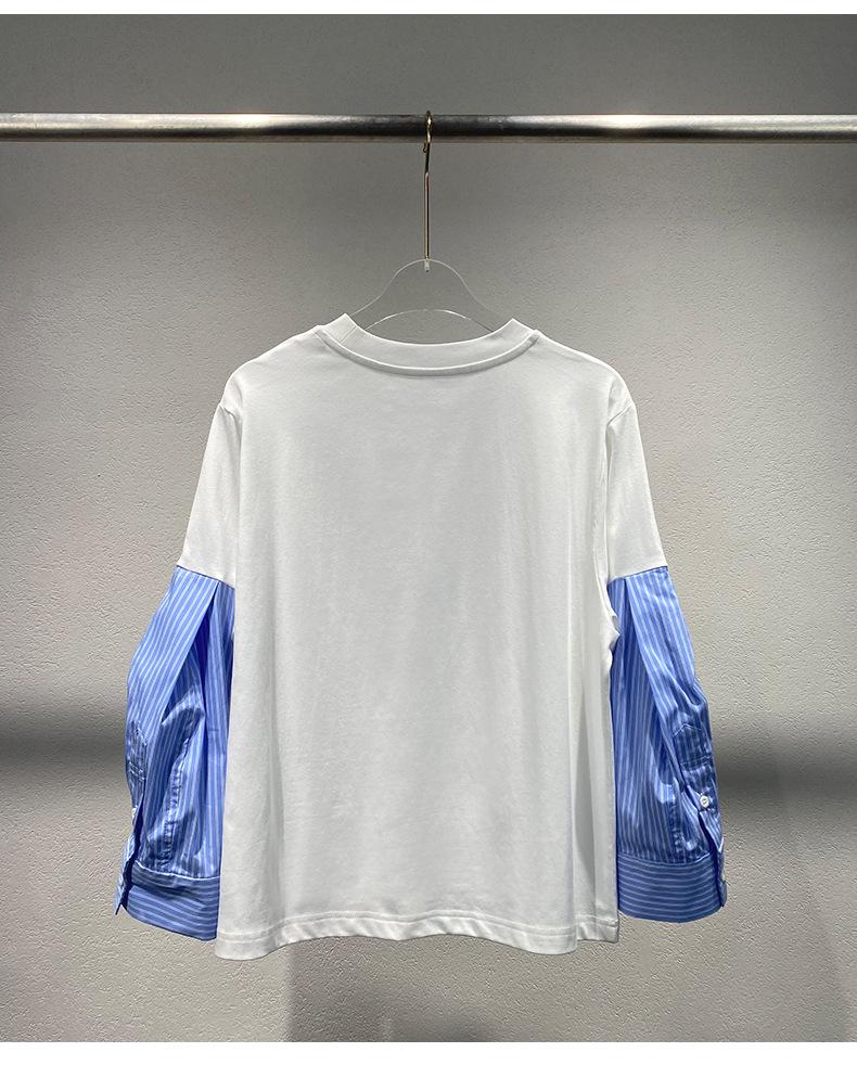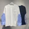 Spot Nicho 2025 Primavera y Verano Nuevo Color Block Cuello Redondo Suelto Corto Empalme Manga Abullonada Camiseta para Mujer