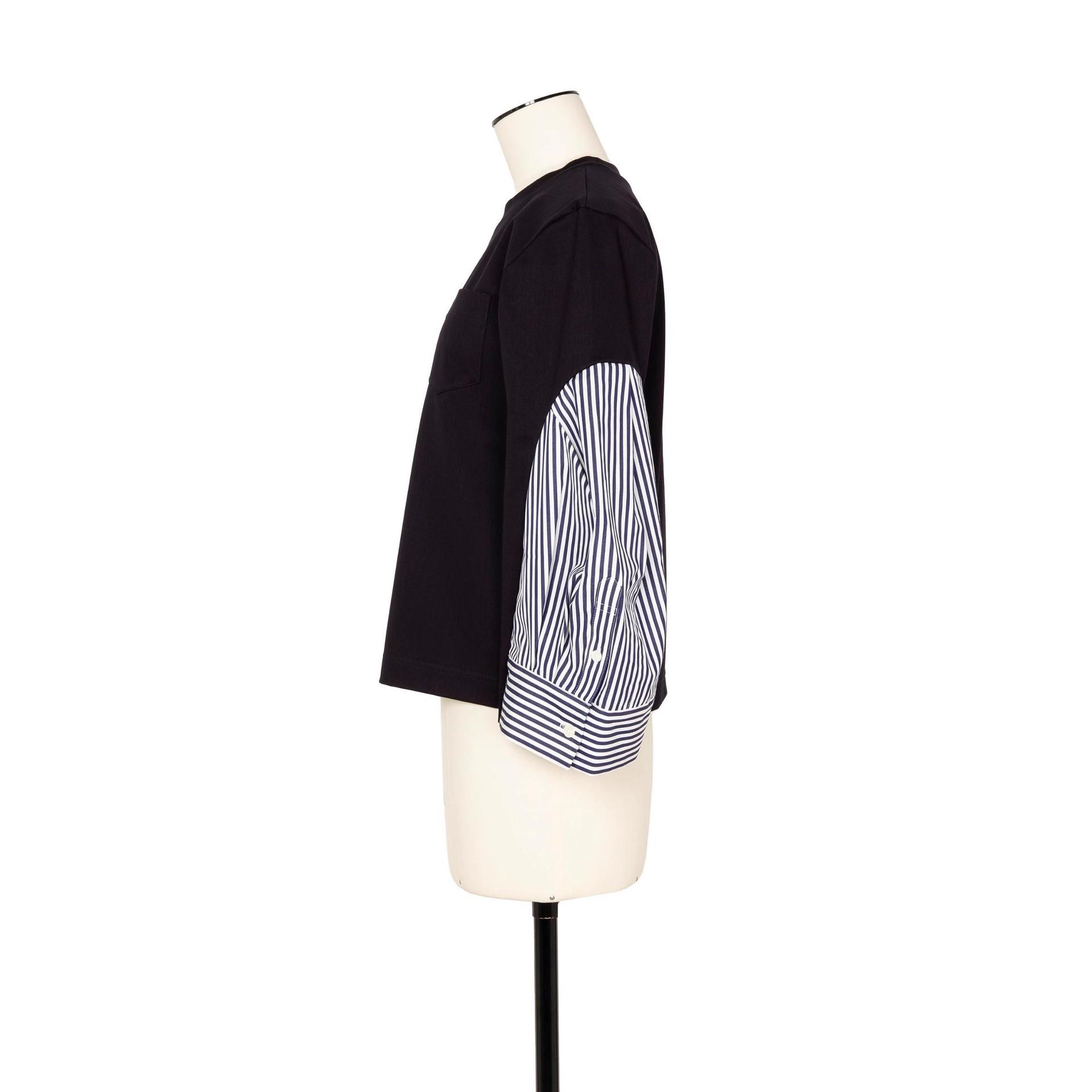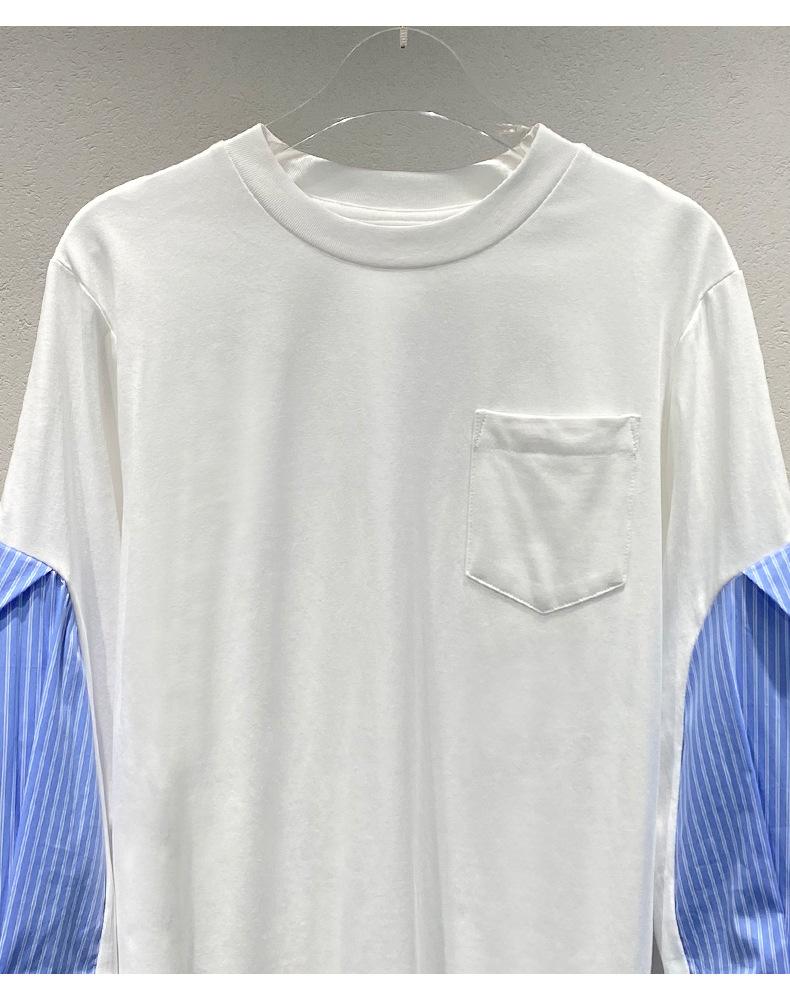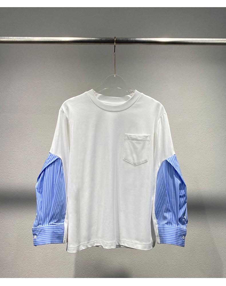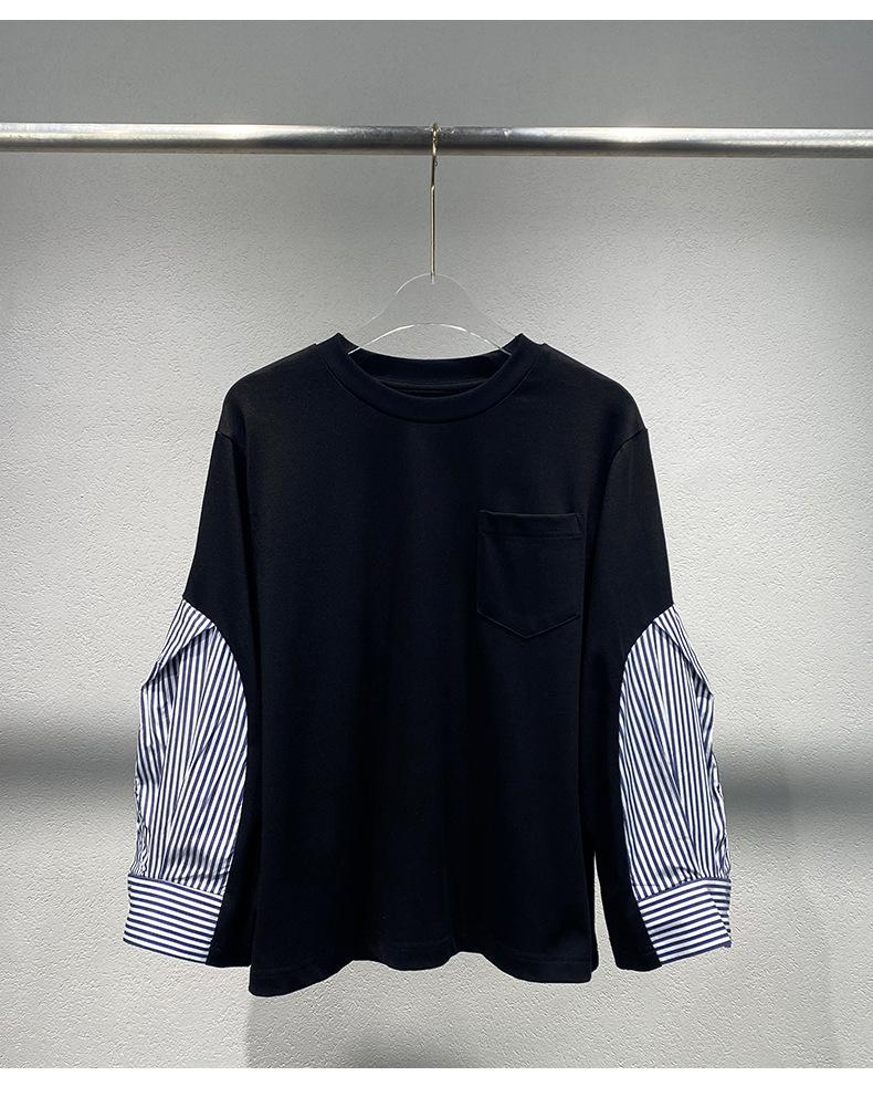 Spot Nicho 2025 Primavera y Verano Nuevo Color Block Cuello Redondo Suelto Corto Empalme Manga Abullonada Camiseta para Mujer