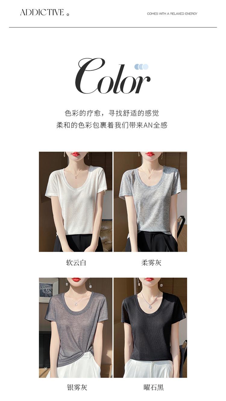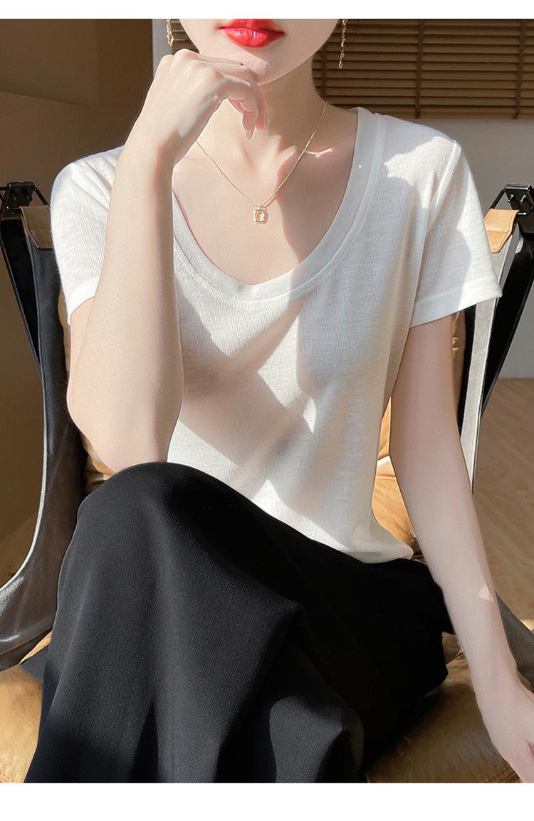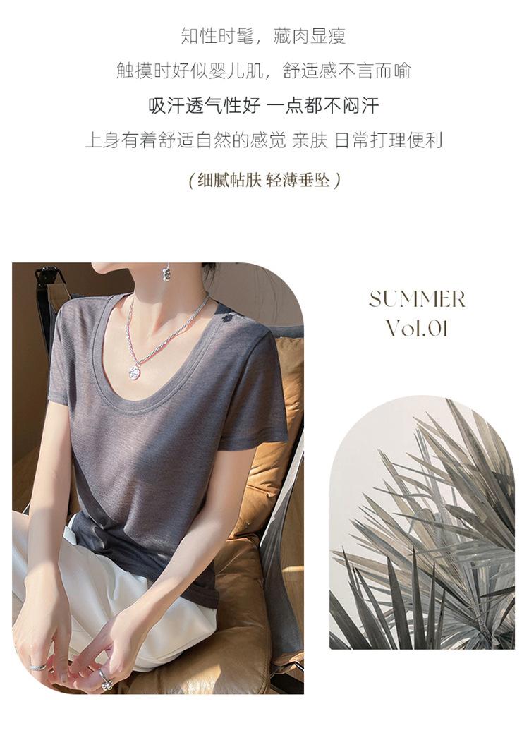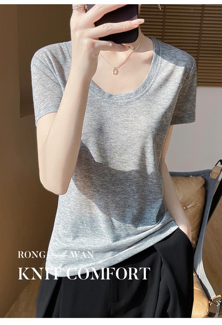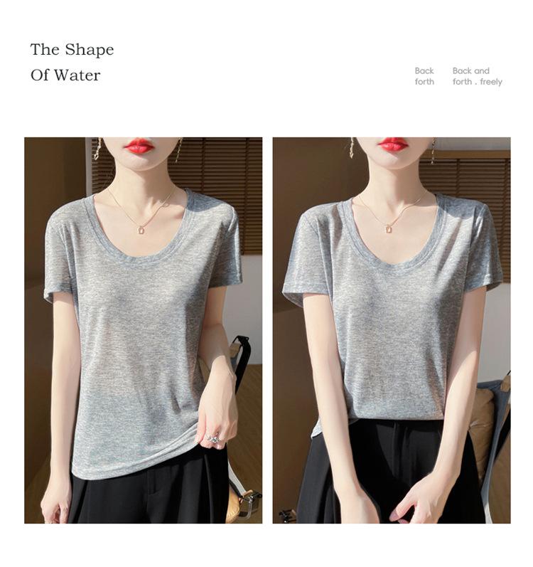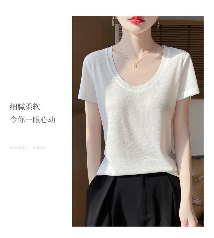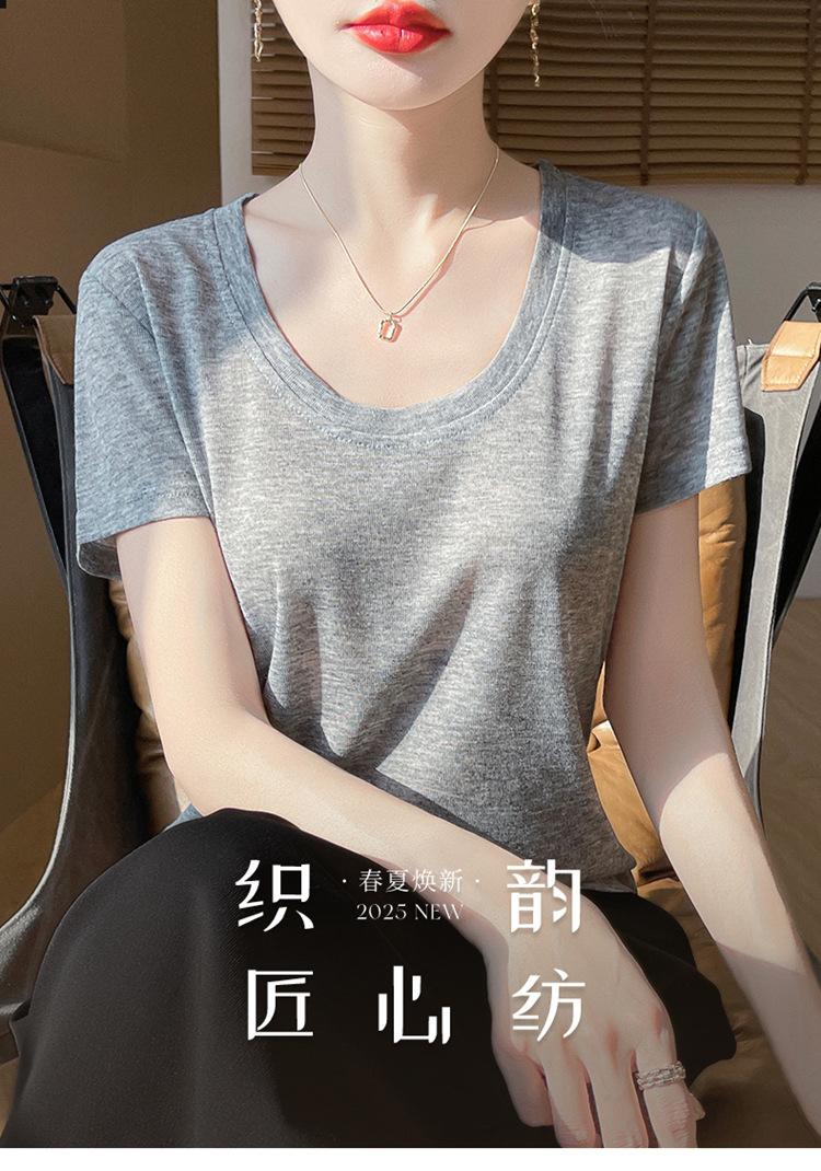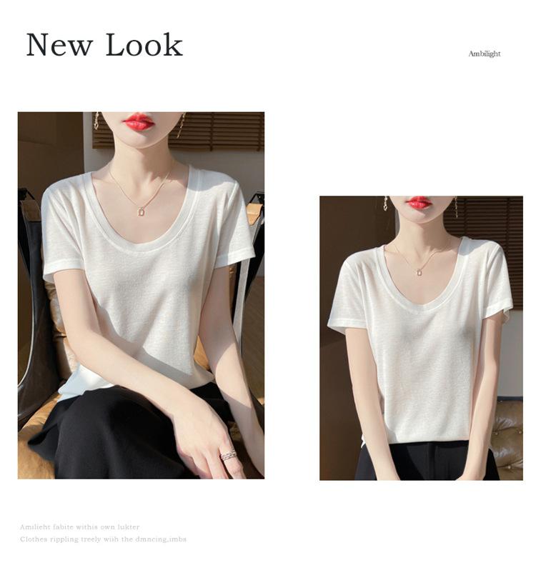Camiseta corta con hombros descubiertos para mujer, nueva camiseta de moda con cuello en U, ajustada, de manga corta, fina y a la moda, primavera y verano de 2025