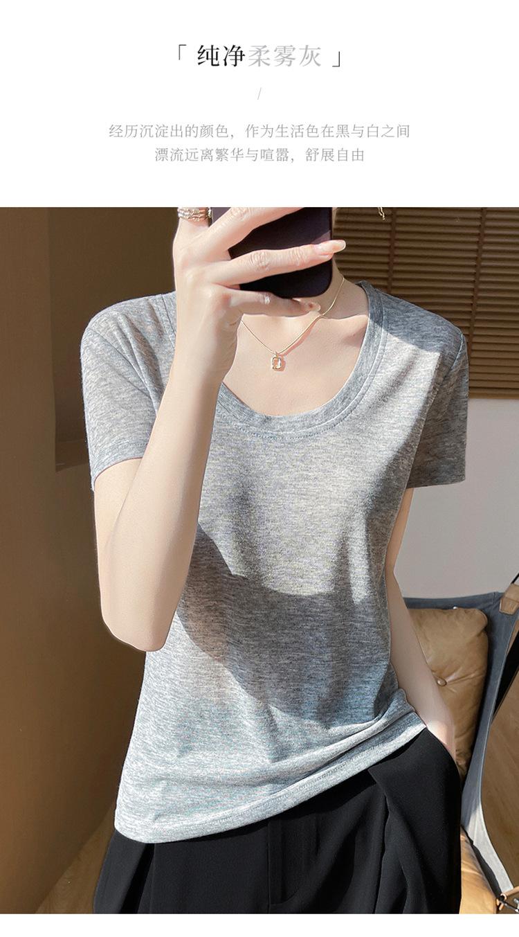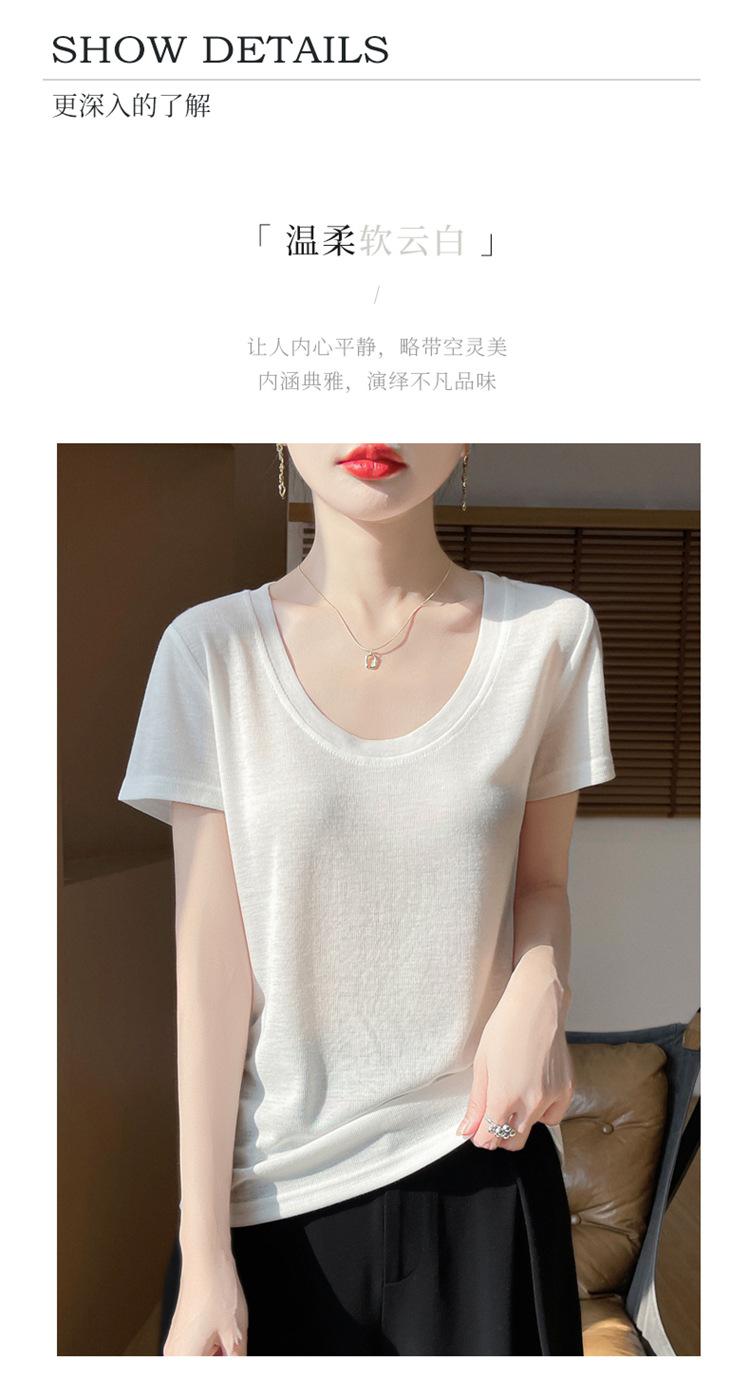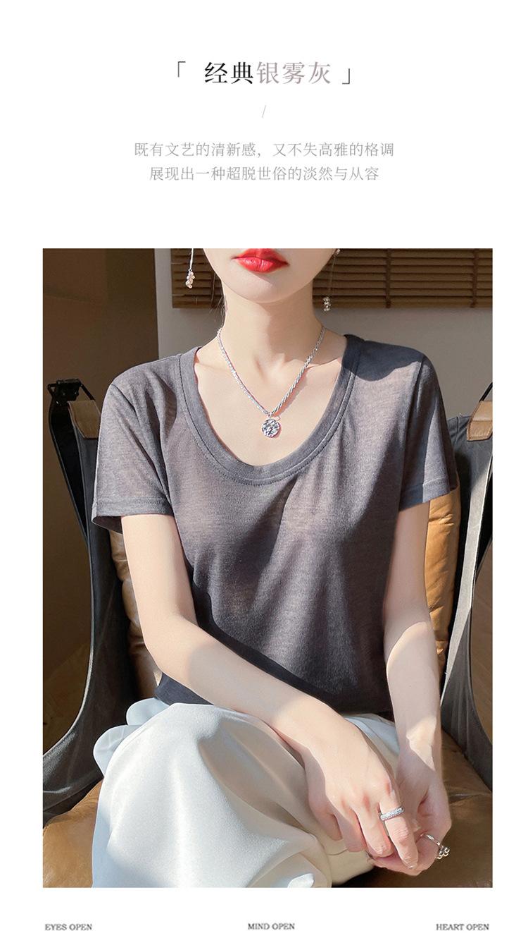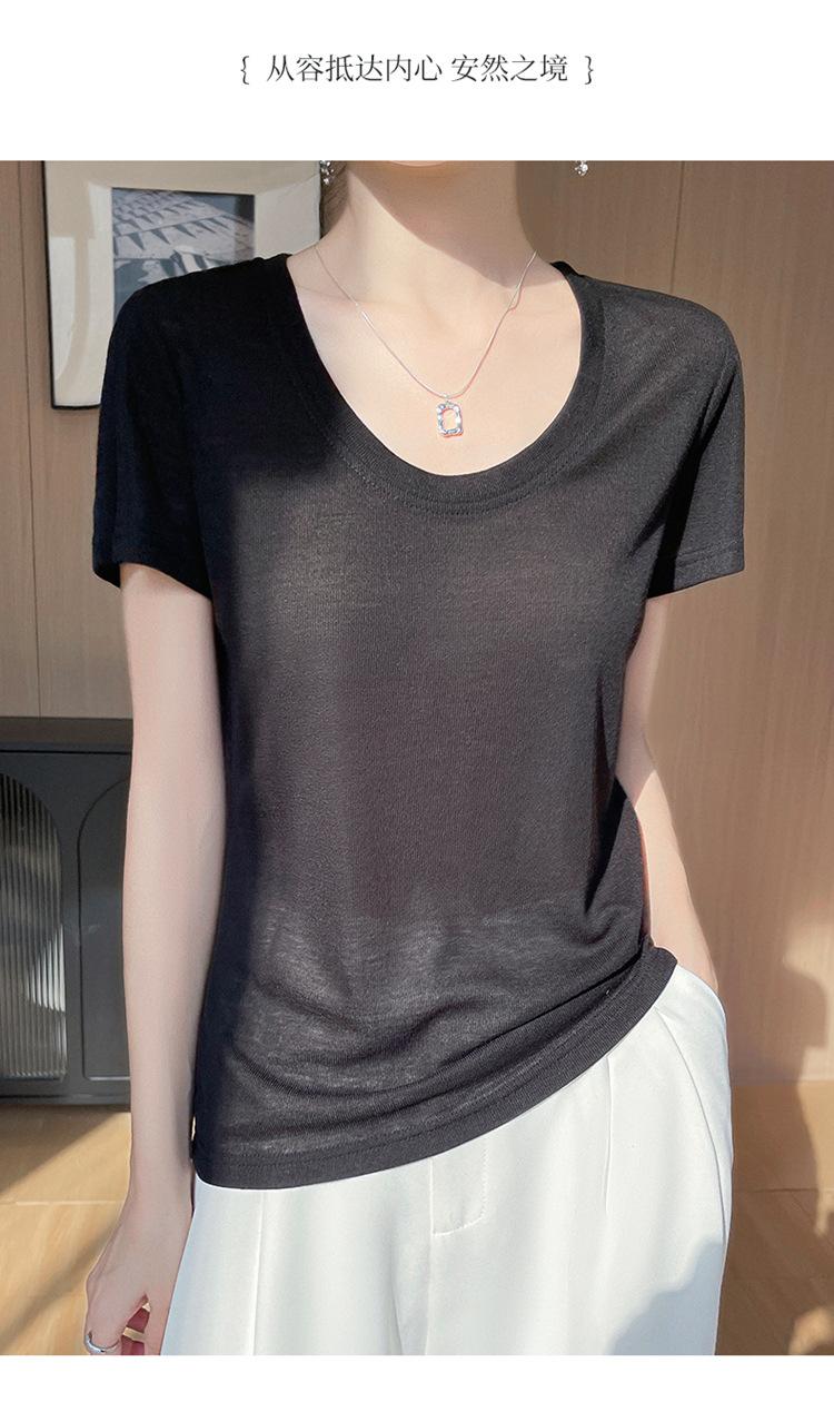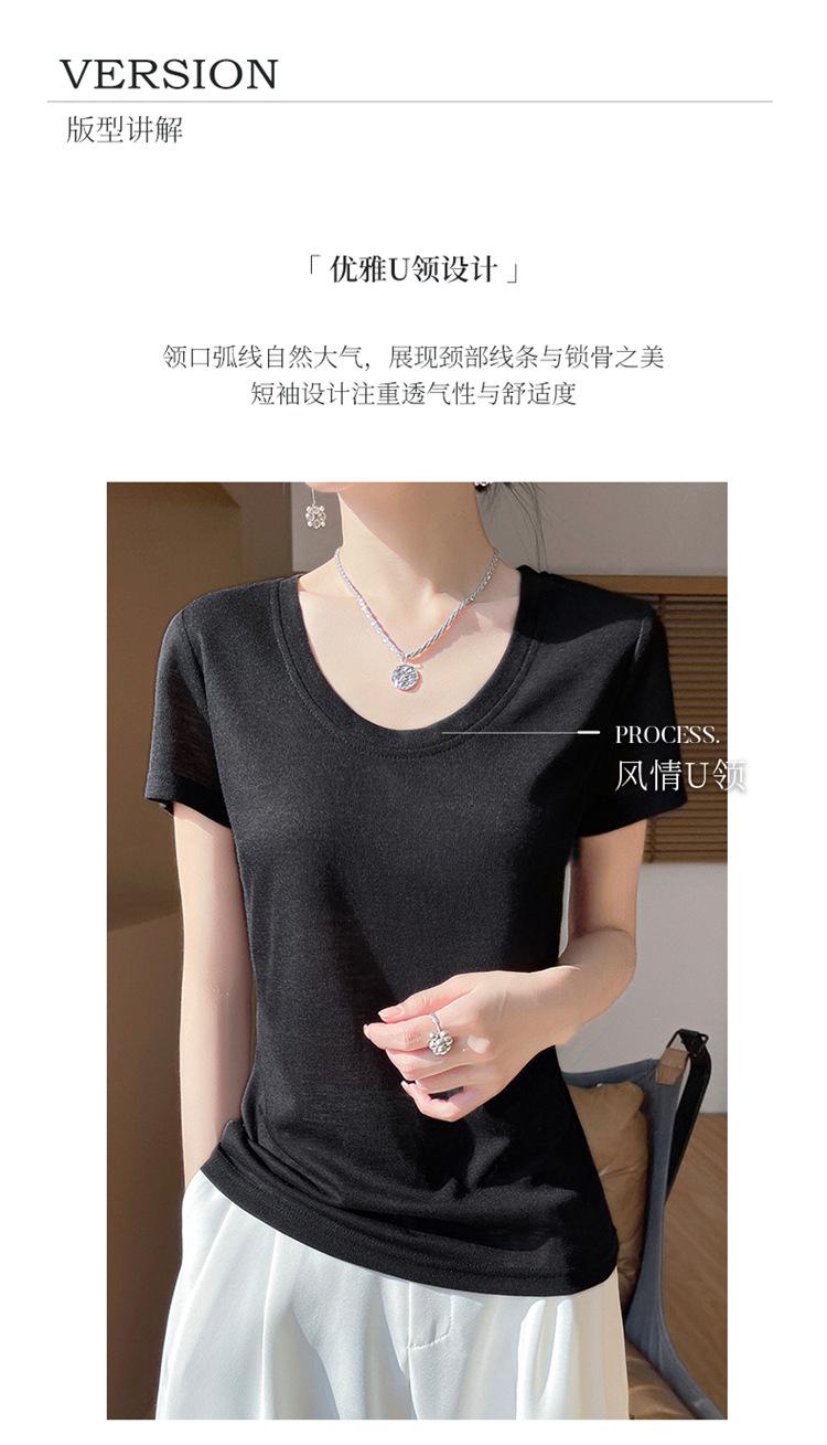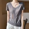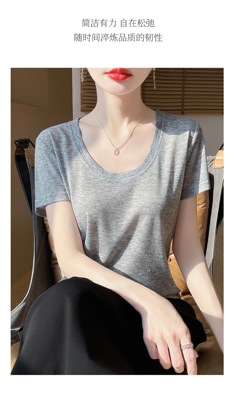 Camiseta corta con hombros descubiertos para mujer, nueva camiseta de moda con cuello en U, ajustada, de manga corta, fina y a la moda, primavera y verano de 2025