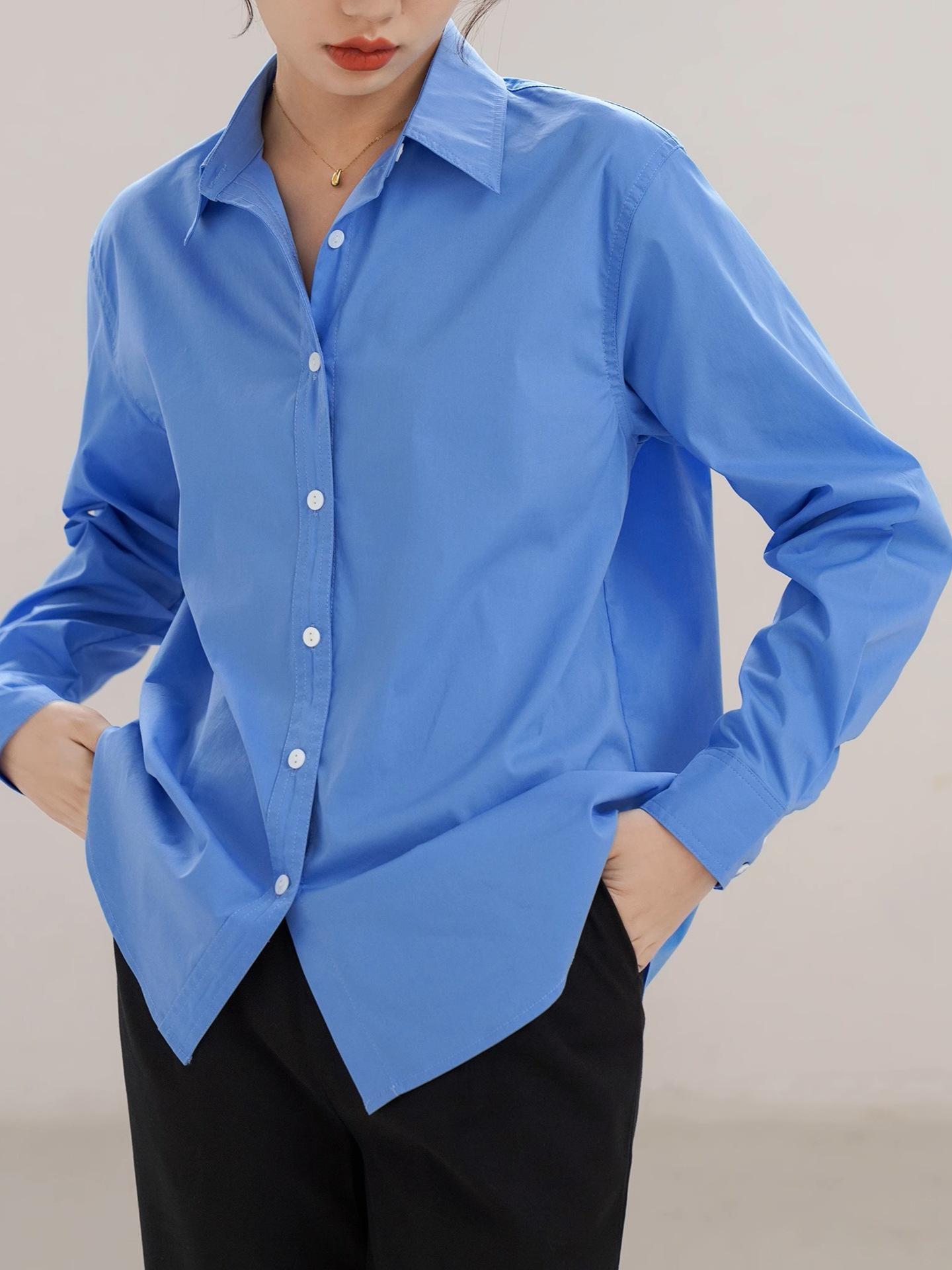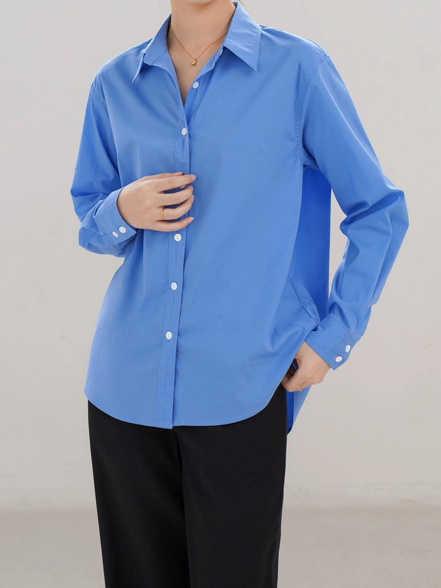 ¡alta calidad! Camisa azul elegante para mujer, primavera, nueva, diseño de manga larga, estilo Hong Kong, blusa holgada.