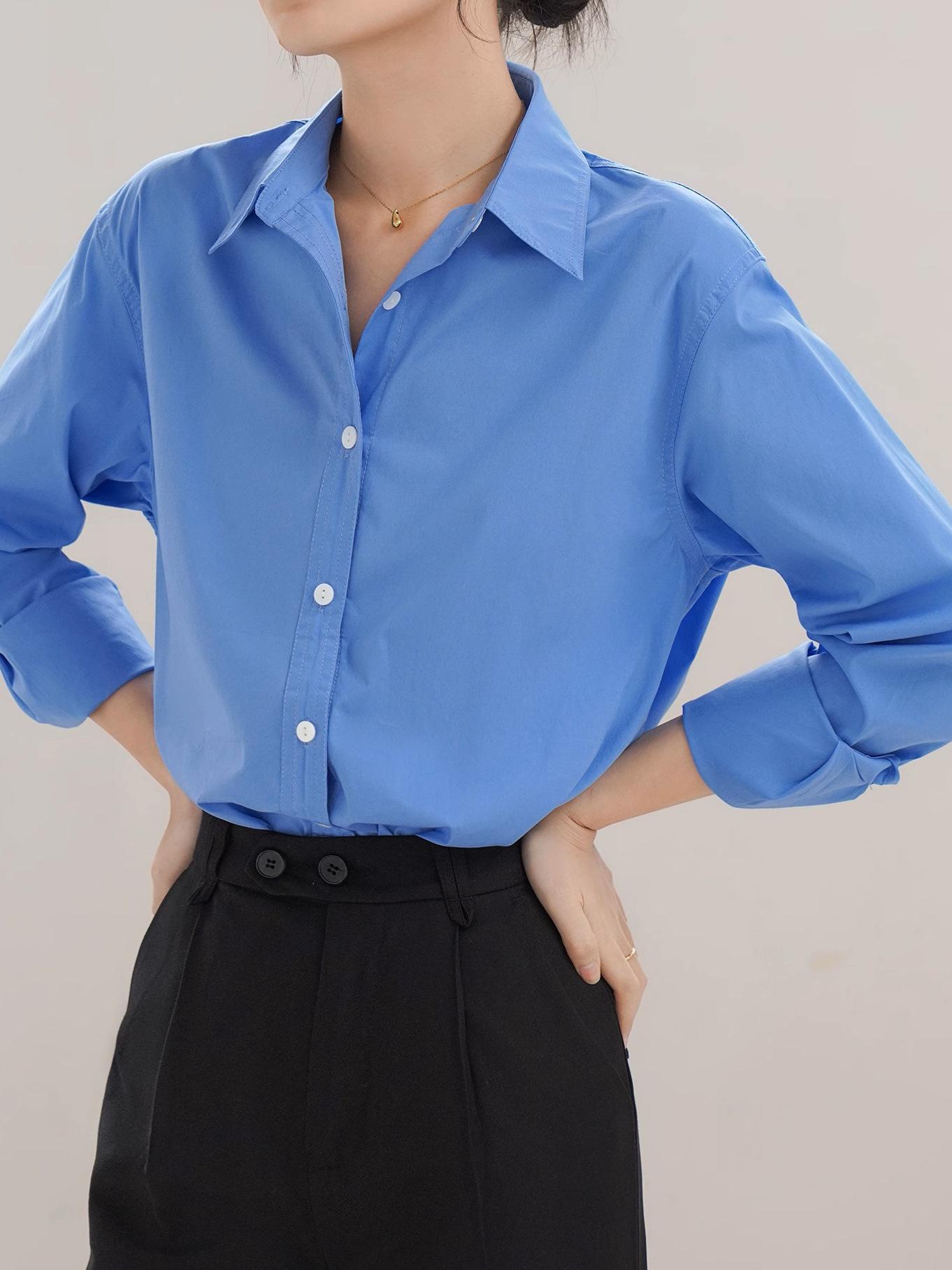 Compra ¡alta calidad! Camisa azul elegante para mujer, primavera, nueva, diseño de manga larga, estilo Hong Kong, blusa holgada. al por mayor en Joom.pro