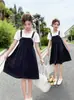 Vestido camisero para niña, estilo coreano de verano 2025, manga corta, nuevo estilo, vestido de princesa con lazo para niña pequeña.