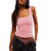 2025 Nuevo Camisola sin Mangas para Mujer Cuello Cuadrado Casual Básico Crop Top Ropa Europea y Americana