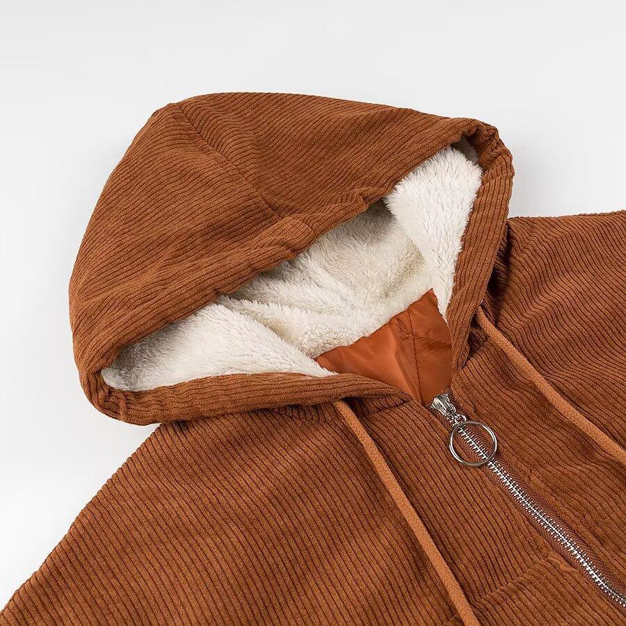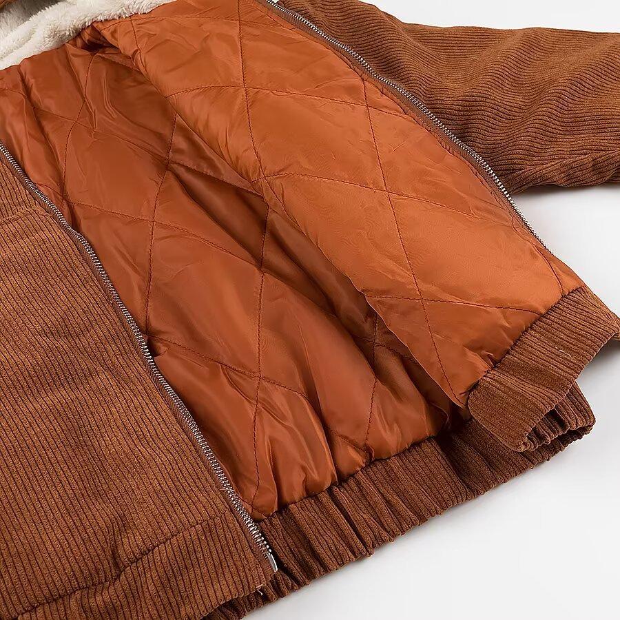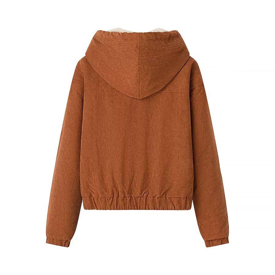 Ropa de pana con capucha y acolchada de algodón para mujer, primavera 2025, transfronteriza, europea y americana