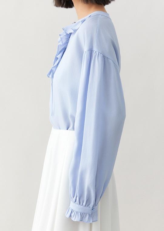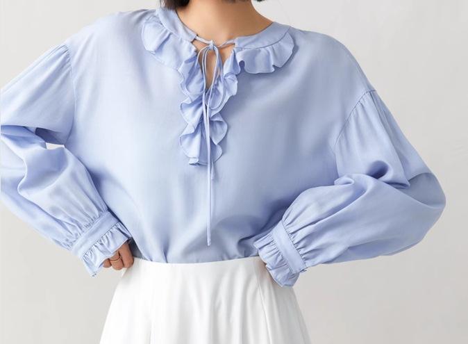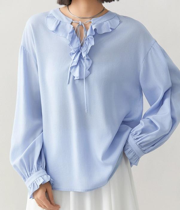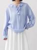 Primavera y Otoño 2025 Nueva Camisa Elegante de Oficina Holgada con Cordones Plisada Atmósfera Romántica Camisa con Volantes para Mujer