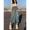 Falda de mezclilla retro para mujer 2025 nuevo estilo pequeña cintura alta delgada media longitud línea A abertura falda que cubre la cadera