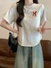 Camiseta de manga corta irregular para mujer, nuevo diseño de verano 2025, top corto de cintura alta y manga corta con diseño de nicho.