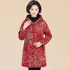 Abrigo grueso con forro polar de longitud media para mujeres de mediana edad y mayores, abrigo cálido de algodón acolchado con cintura, ropa de invierno, abrigo con capucha de algodón acolchado, ropa para madres