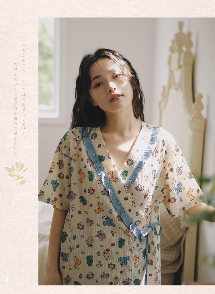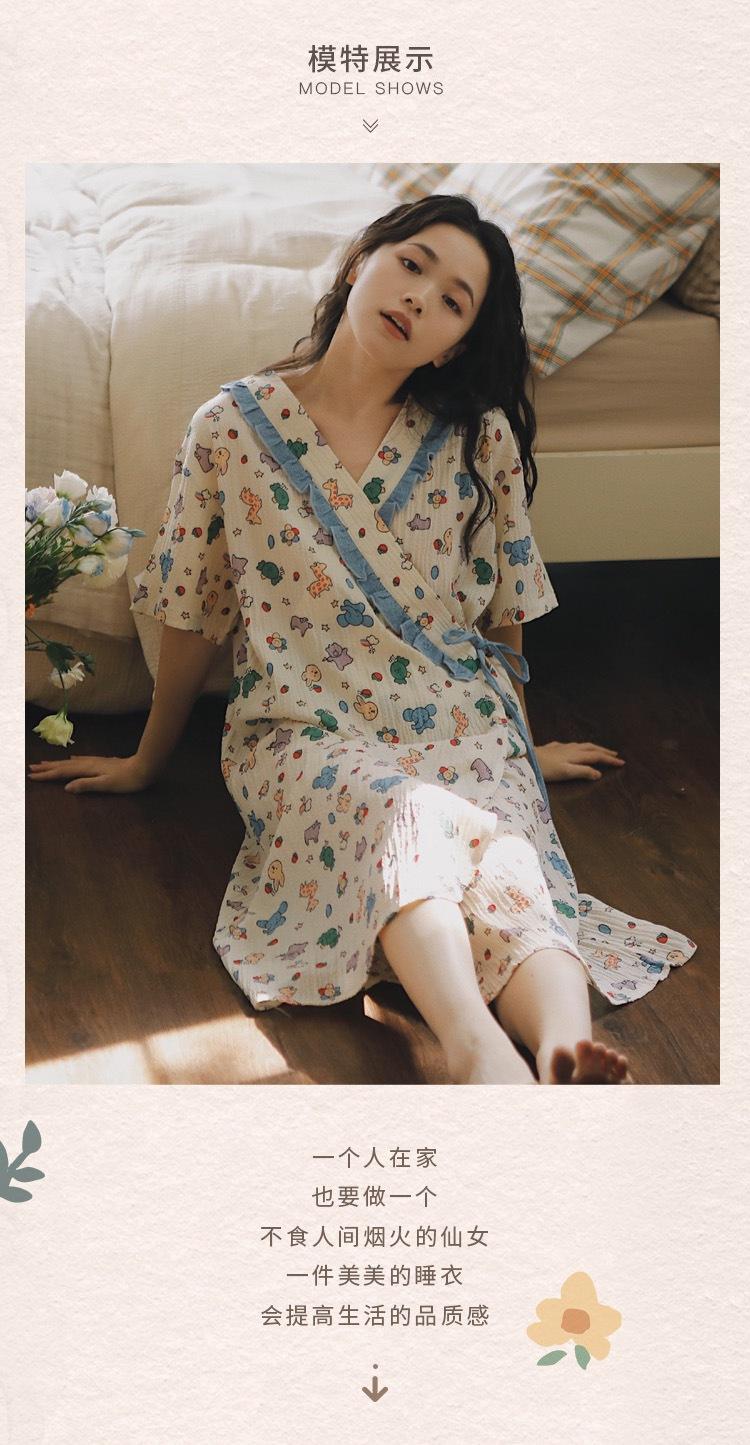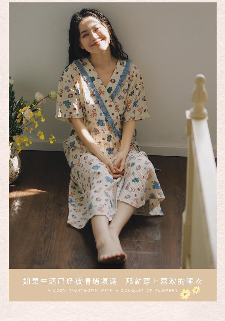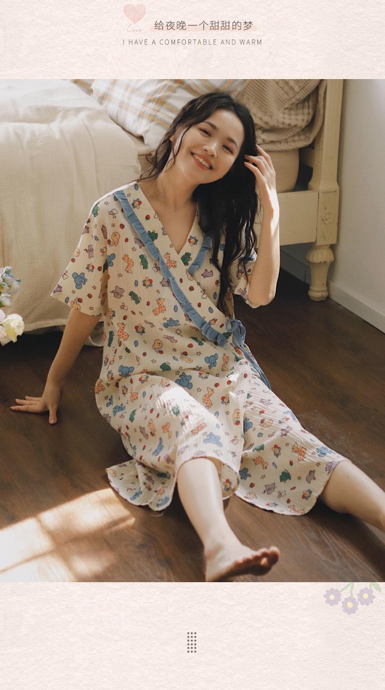 (en stock) Luna Camisón de Lactancia para Mujeres Embarazadas de Crepé Burbuja Tejido de Manga Corta
