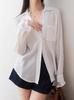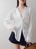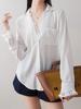 Camisa francesa con escote en V y costuras de encaje para mujer, primavera y otoño 2025, nueva llegada, elegante camisa holgada, hermosa blusa