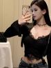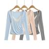 Camiseta de manga larga adelgazante de corte entallado irregular de otoño, estilo Spice Girls, con hombros descubiertos y escote sexy.