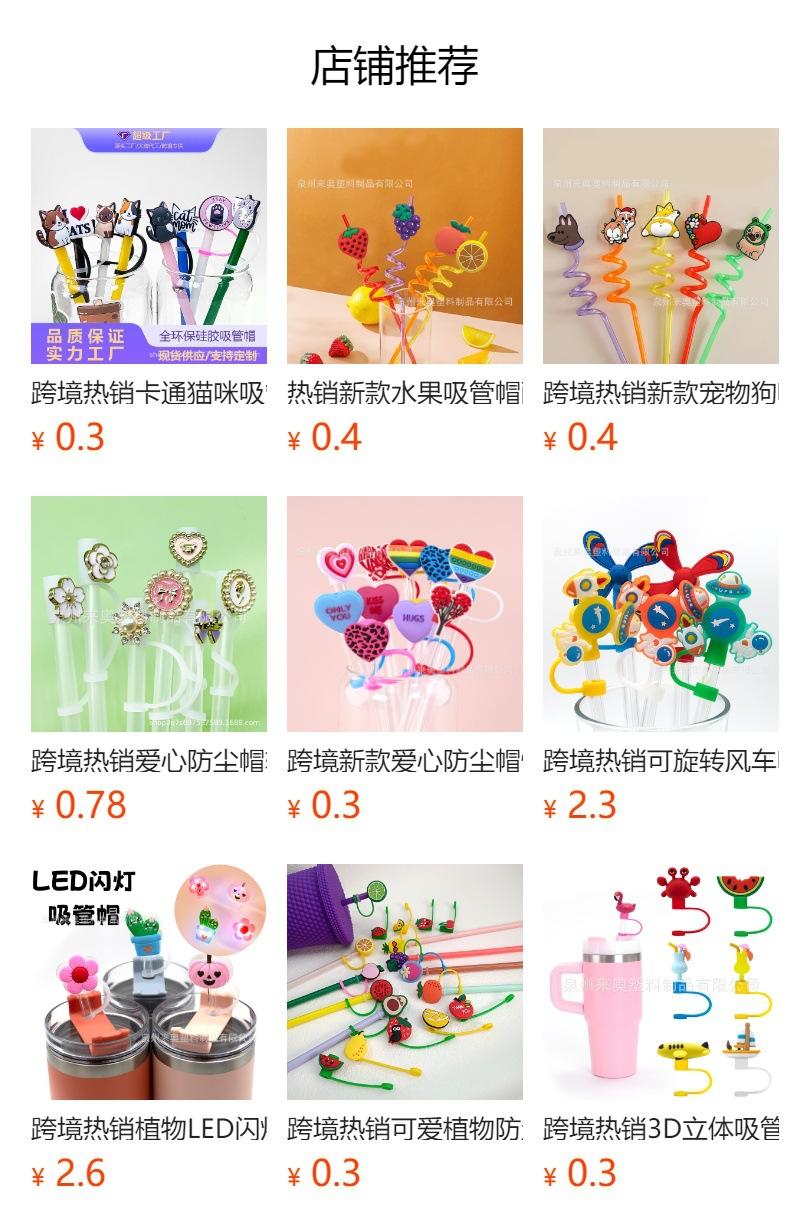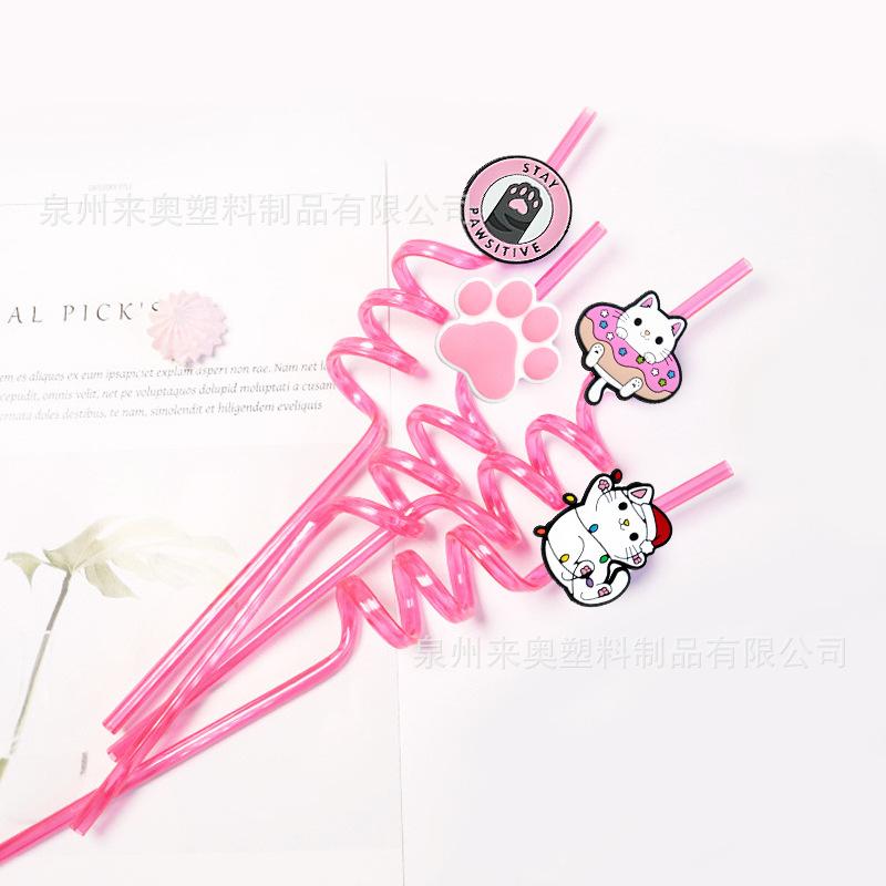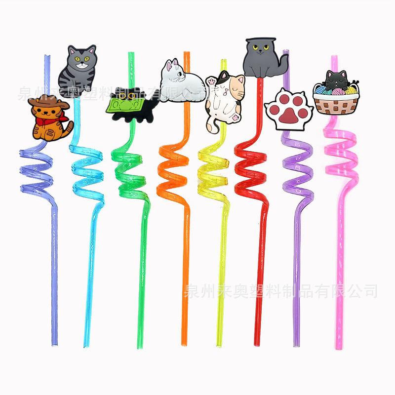 Venta Caliente Transfronteriza Nuevo Accesorios de Tapa de Pajita de Gato en stock Animal de Dibujos Animados PVC Pegamento Suave Soporte para Pajita