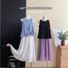Conjunto de dos piezas para mujer, estilo elegante, elegante, negro, ajustado, sin mangas, cintura alta, largo medio, verano 2025