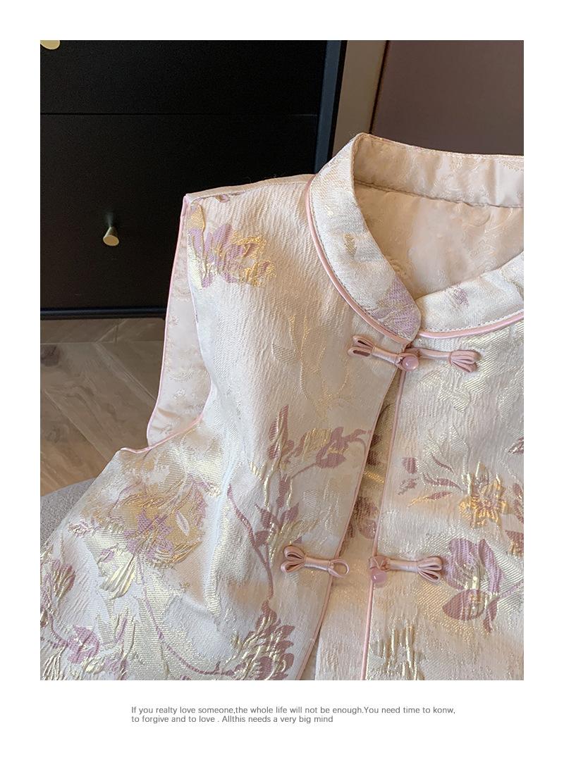 Chaleco con hebilla de jacquard bronceado de estilo chino para mujer, primavera y verano 2025, nuevo chaleco elegante de alta gama de estilo nacional con cuello apilado.