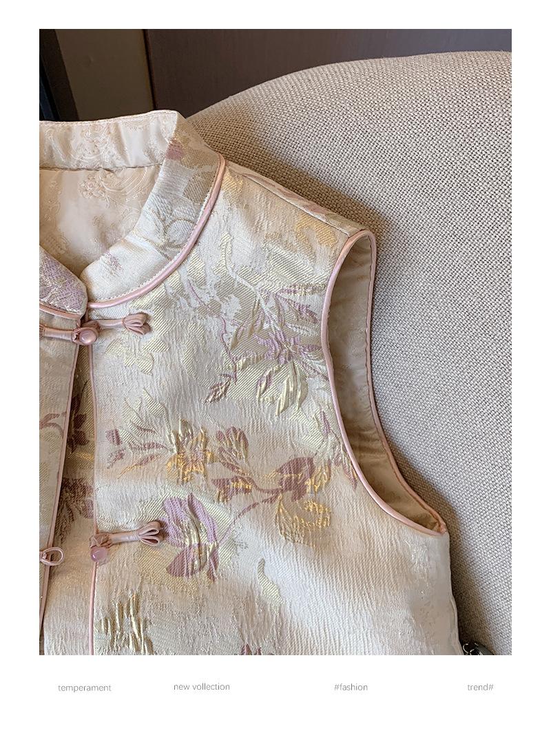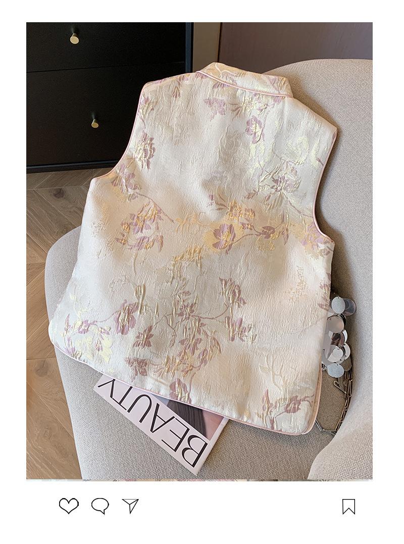 Nuevo chaleco jacquard con botones y estampado en caliente de estilo chino para mujer 2025 primavera y verano nuevo temperamento de alta gama estilo nacional chaleco en capas con cuello alto