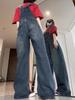 Mono vaquero retro estilo americano para mujer, nuevo diseño de otoño, monos holgados de pierna ancha con sensación de estilo nicho.