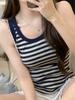 Camisola pequeña a rayas con almohadilla para el pecho para mujer, base interior de primavera y verano, top sin mangas adelgazante de corte ajustado