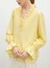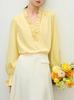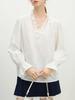 Camisa elegante de encaje con cuello en V estilo francés para mujer, diseño de primavera 2025, elegante top holgado tipo jersey de nicho.