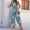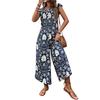 Mono de comercio exterior de Amazon 2025 nuevo verano mono europeo y americano transfronterizo estampado de pierna ancha
