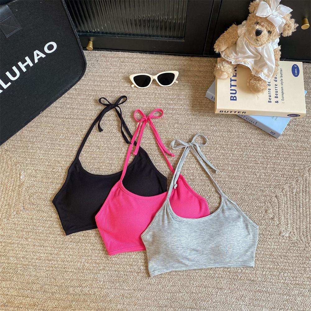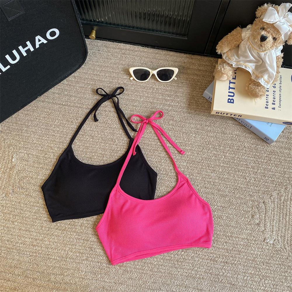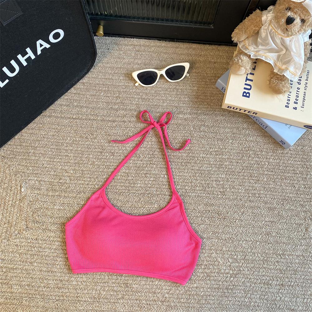 2024 Verano Puro Deseo Chica Caliente Entallada Entallada Hermosa Espalda Colgante Cuello Tubo Top Sexy Todo Combinado Top