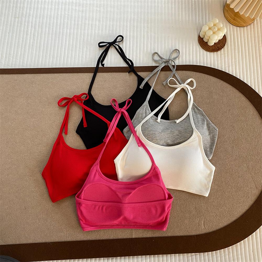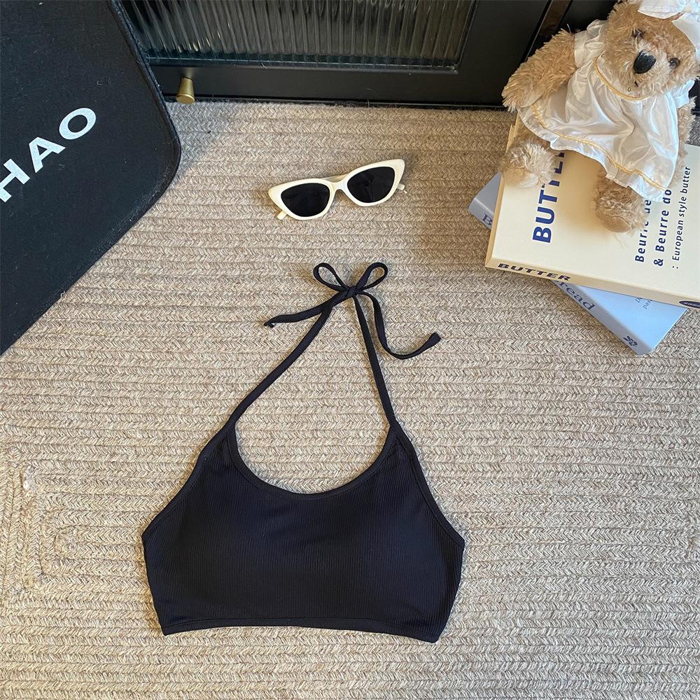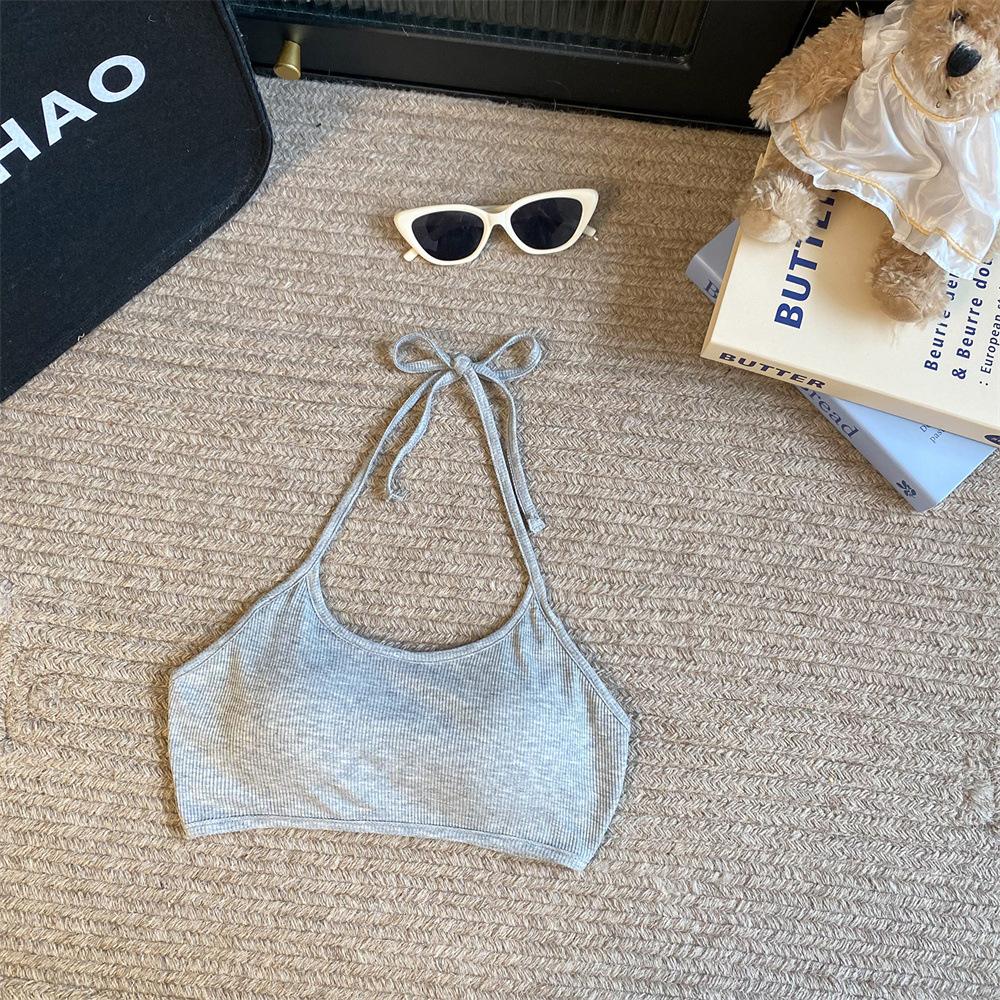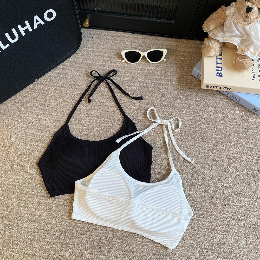 2024 Verano Puro Deseo Chica Caliente Entallada Entallada Hermosa Espalda Colgante Cuello Tubo Top Sexy Todo Combinado Top