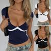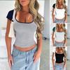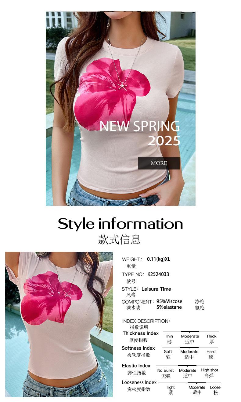 Diyun 2025 Primavera y Verano Y2K Europeo y Americano Amazon Tops Camiseta Casual de Manga Corta con Estampado de Flores de Cintura Ajustada para Mujer