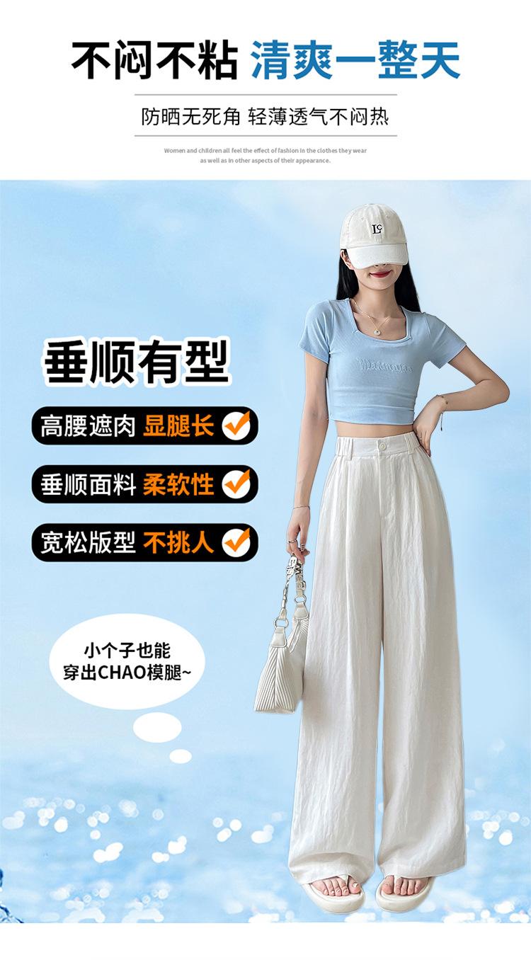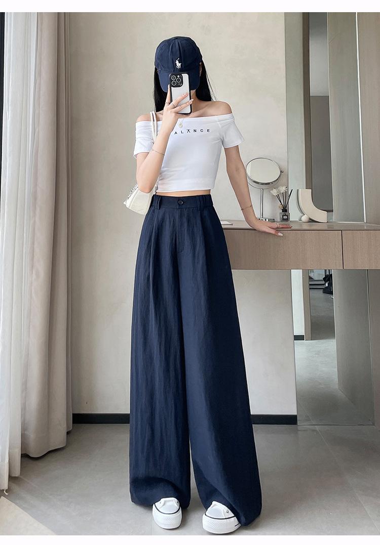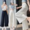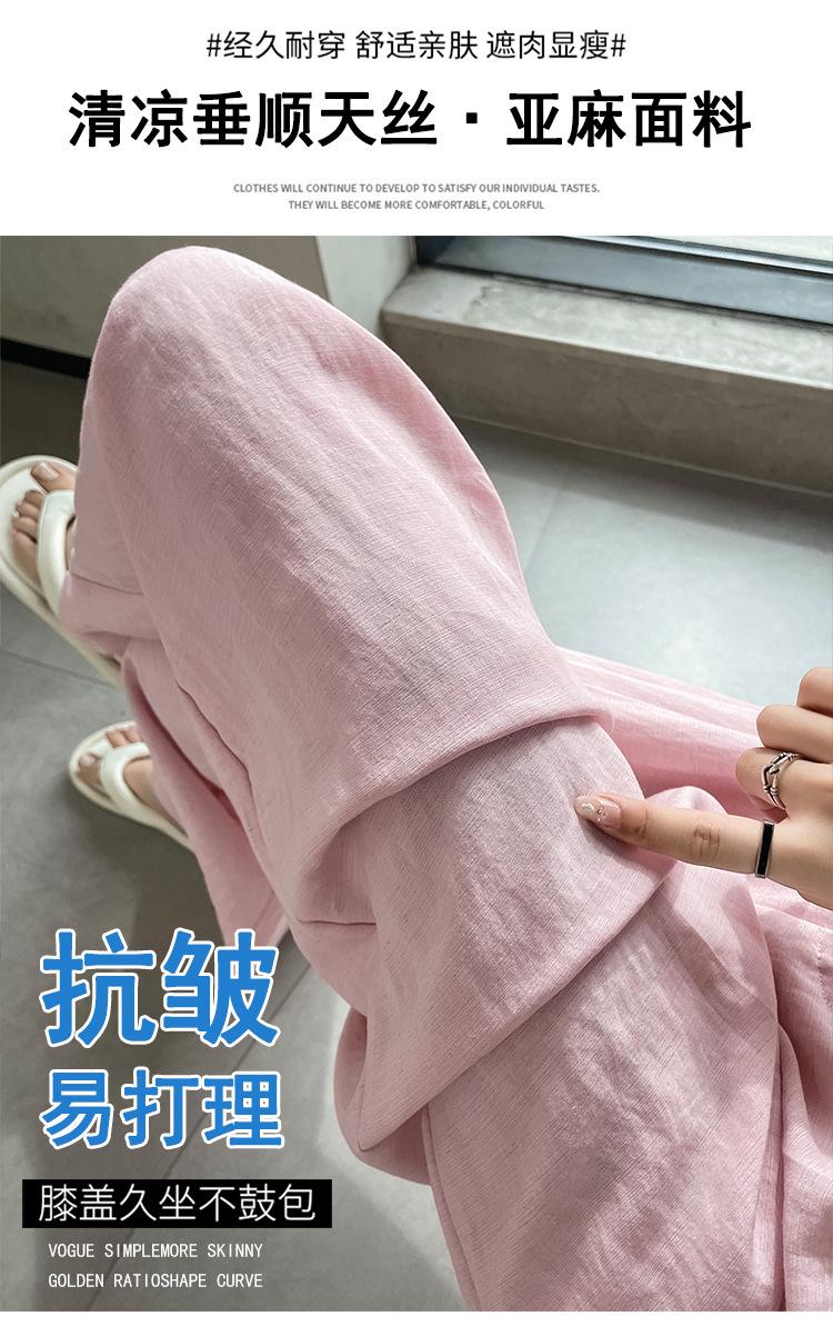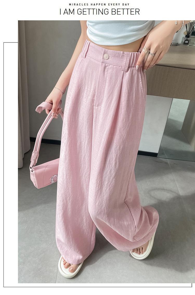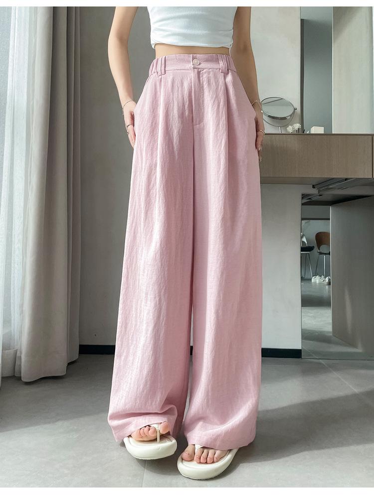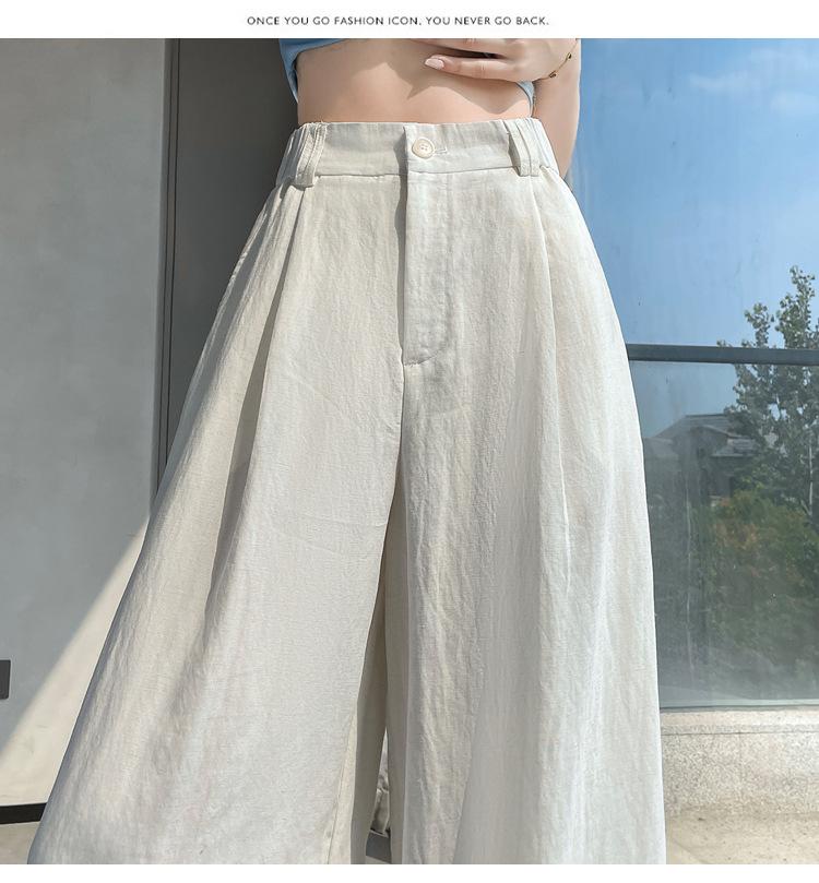 Verano 2025 Nuevo Pantalón de Pierna Ancha para Mujer Seda de Hielo Cintura Alta Pierna Recta Casual Algodón Lino Traje Pantalón de Pierna Recta
