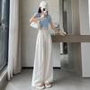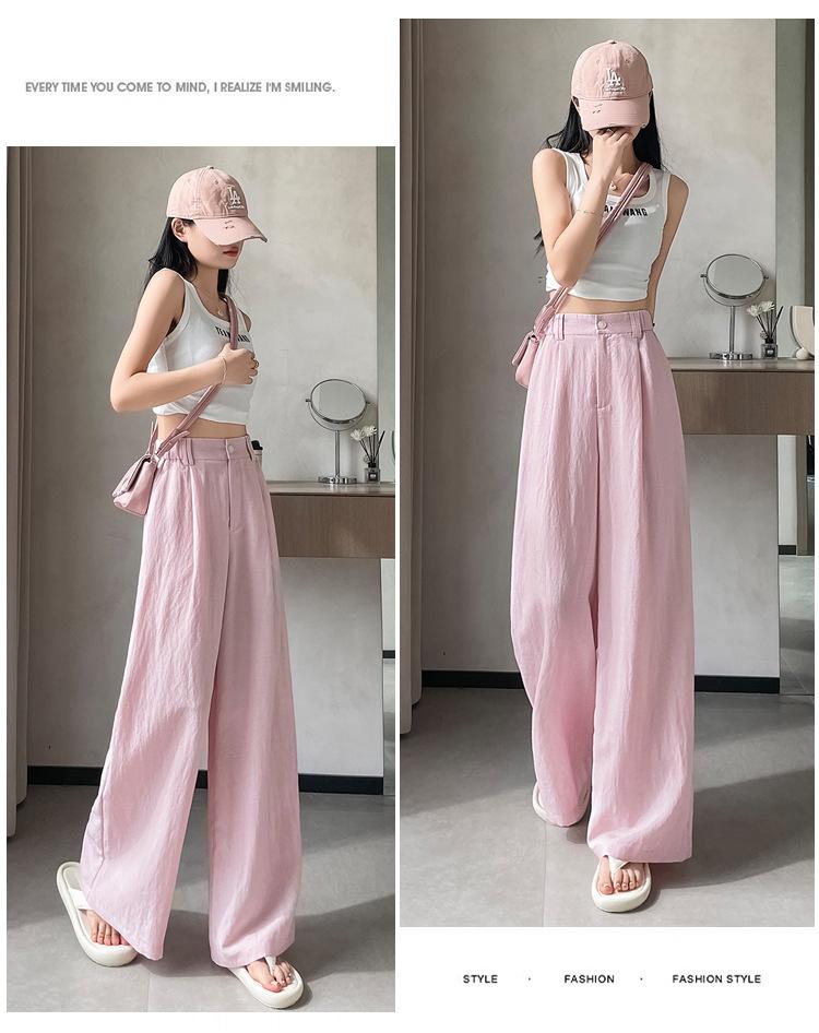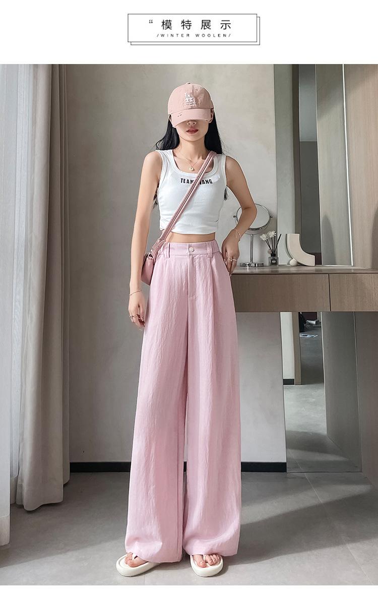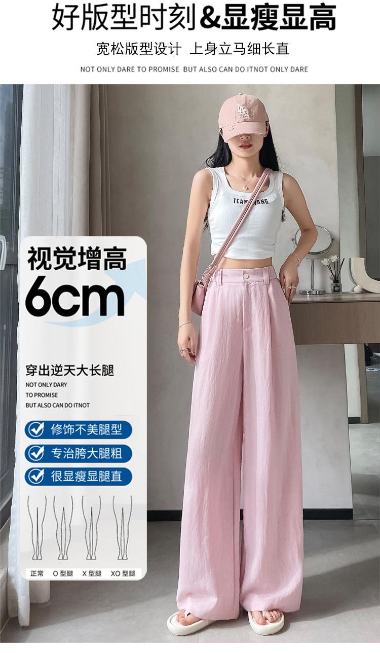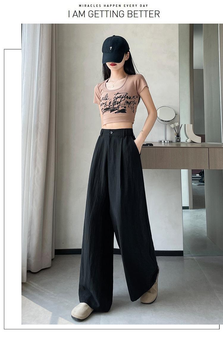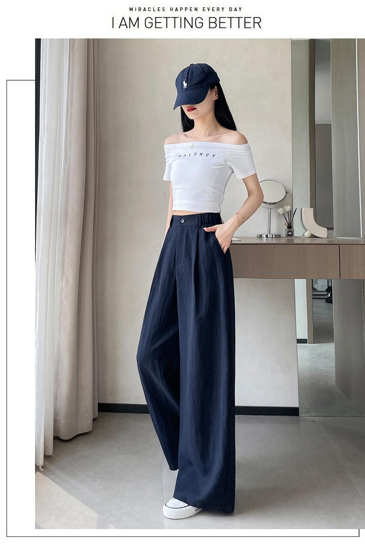 Verano 2025 Nuevo Pantalón de Pierna Ancha para Mujer Seda de Hielo Cintura Alta Pierna Recta Casual Algodón Lino Traje Pantalón de Pierna Recta